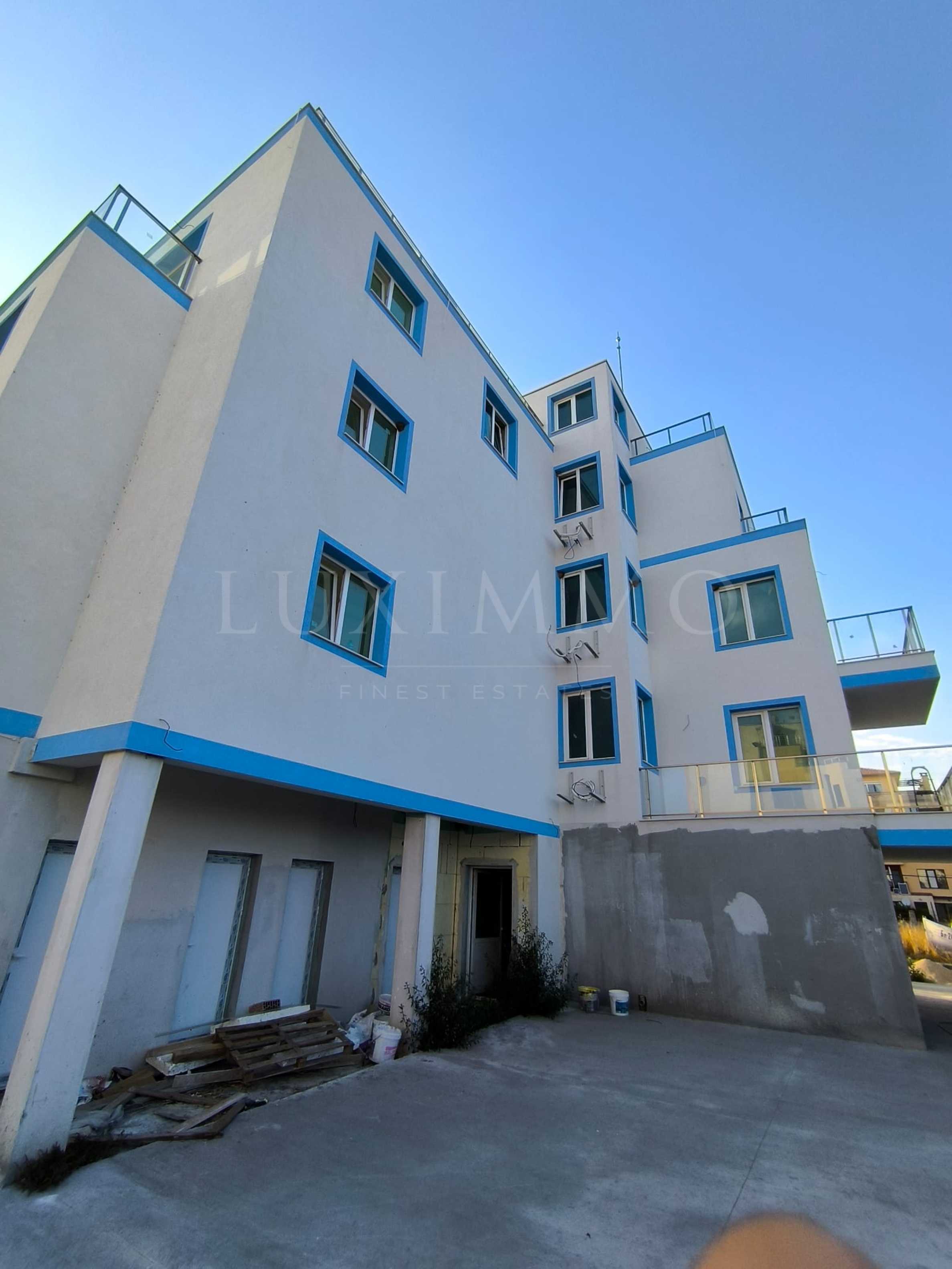 На етаж има по два апартамента и всеки апартамент разполага с килер, тераса и гледка към морето.