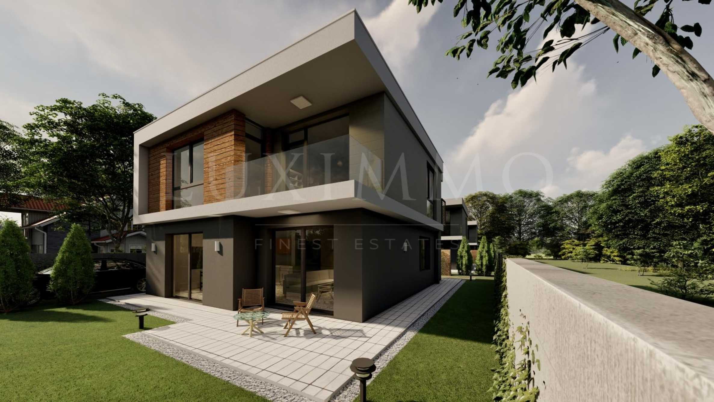 Представяме атрактивна къща с четири спални и двор, модерно ново строителство, за продажба на 15 мин с кола от морето, на 11 км от гр. Варна.