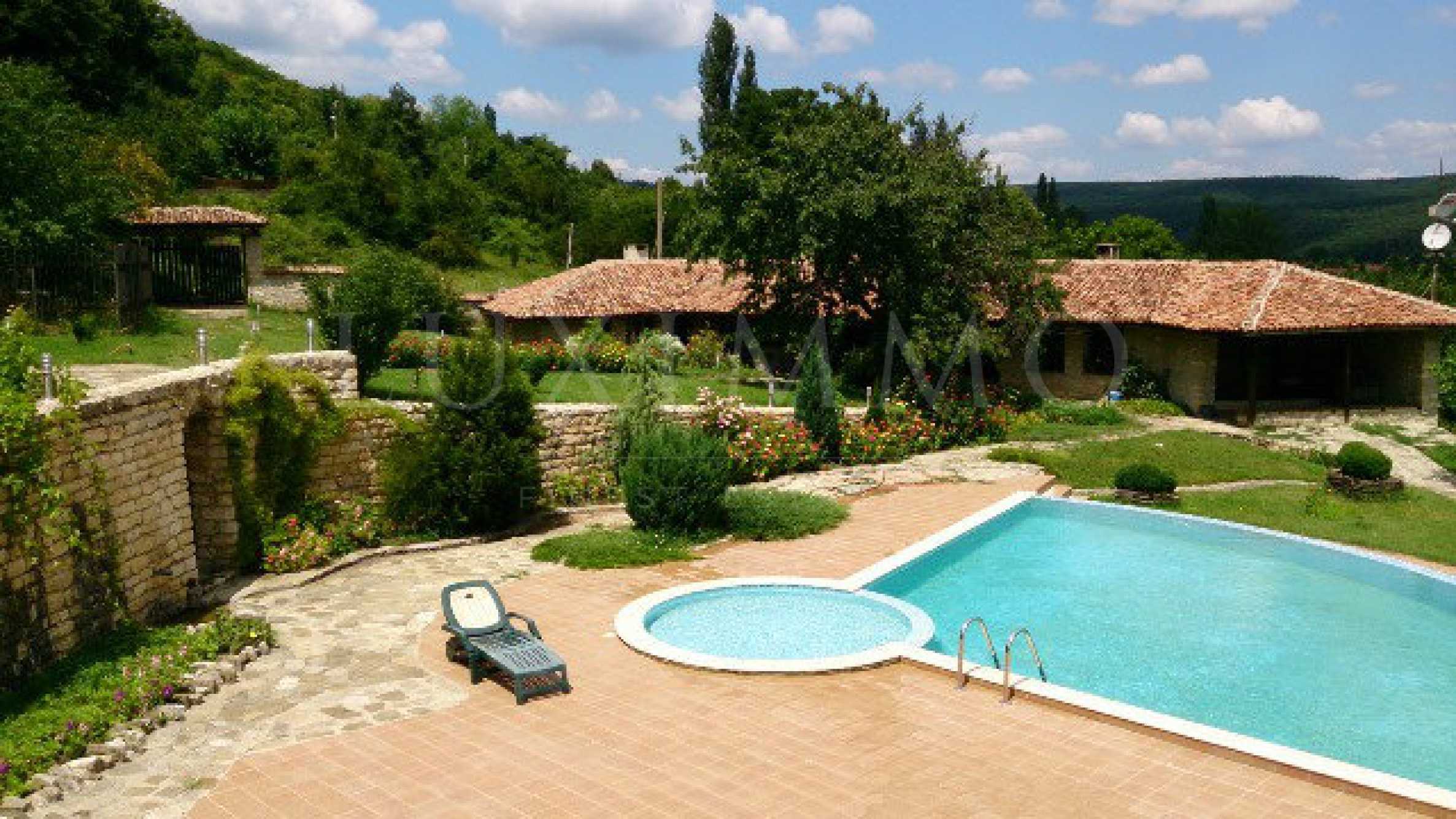 В парцела се влиза по отбивка от основния път, директно в двора, където могат да паркират 5-6 коли. Оградени с ограда са около 10 700 кв.м. Има построени две къщи, басейн и къща за кучетата (охраната). Къщите в имението за строени с екологични материали, камък, дърво- дъб, тухла. Като изпълнение къщите са изключително здрави и напрактика –вечни.