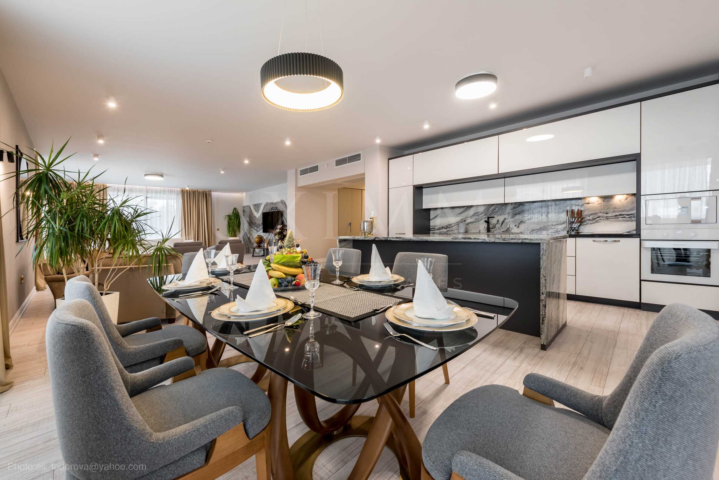 Именно тук се намира този елегантен четиристаен апартамент, с изключителна гледка към морето от първа линия. Сградата е новопостроена и разполага с 29 апартамента с панорамна гледка.
