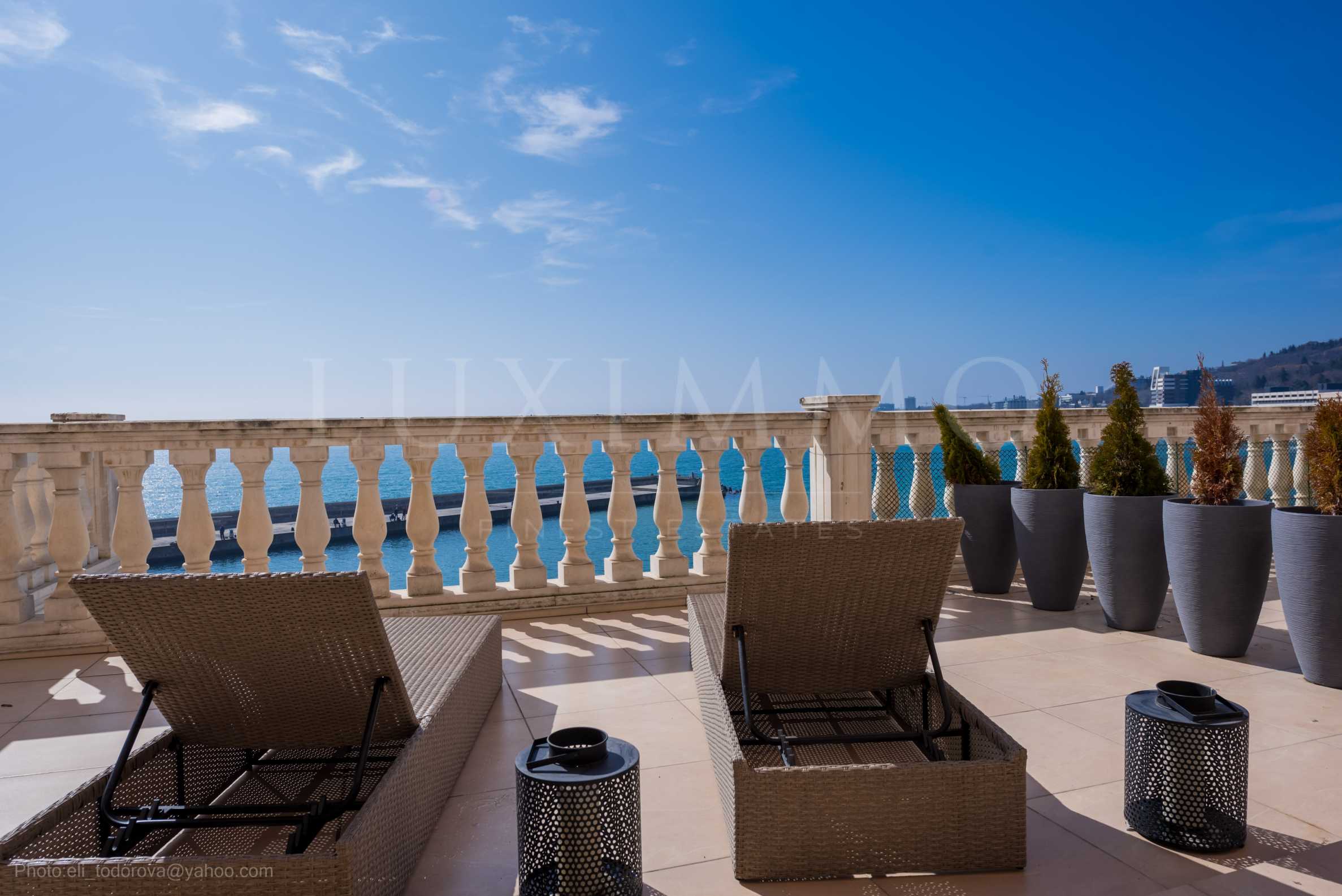 Имотът е разположен на 4-ти етаж и е със застроена площ от 213.50 кв.м, а към него принадлежи и мазе от 4.05 кв.м. Практичен и функционален, семейният имот включва: удобно антре, светъл дневен тракт с модерна кухня с първокласни електроуреди, две просторни и елегантни спални, две бани, разкошна тераса с уникална панорама към морето.