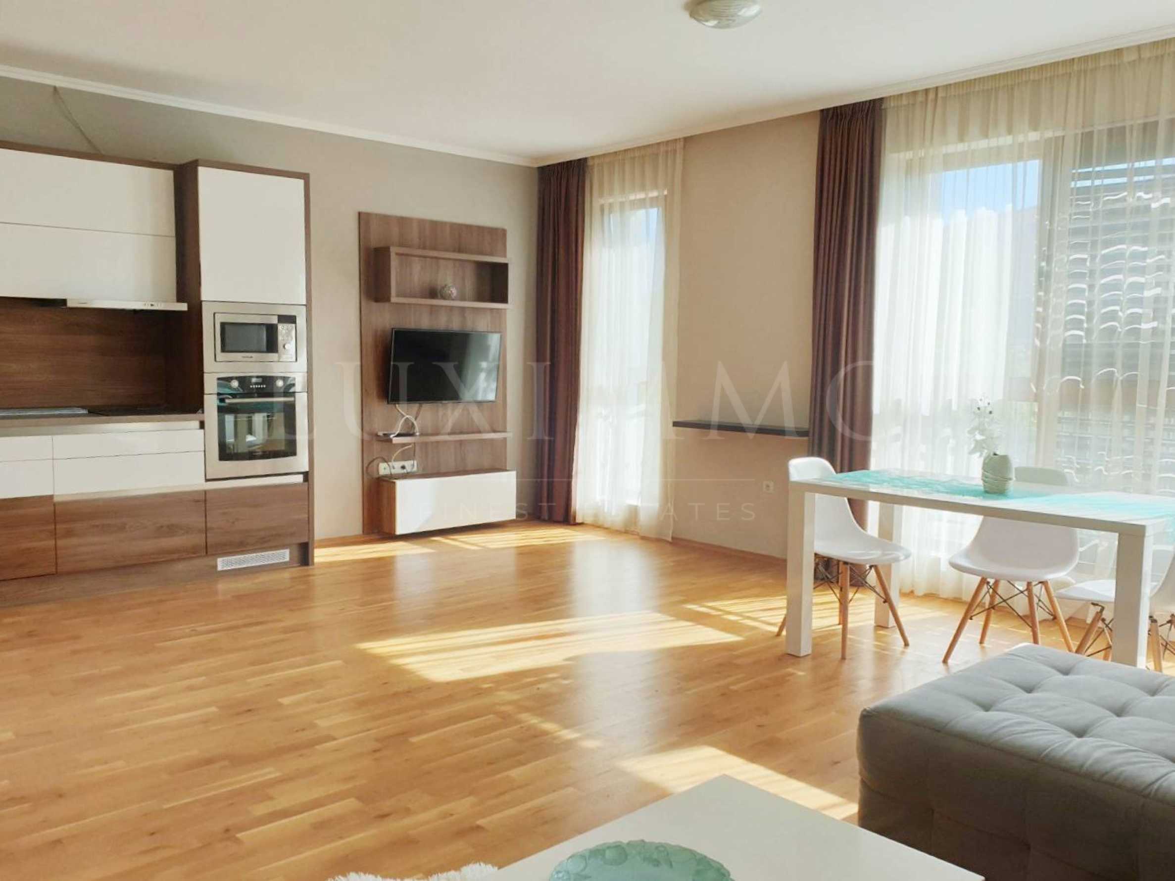 На жилищна площ от 78 кв.м са разпределени: просторна всекидневна с кухненска част, спалня, баня с вана и тоалет, коридор и балкон. Кухнята е напълно обзаведена с голям хладилник с отделна камера, пералня, съдомиялна, фурна, стъклокерамичен плот, абсорбатор. Уютната спалня има голям гардероб и тоалетка. Банята е с вана.