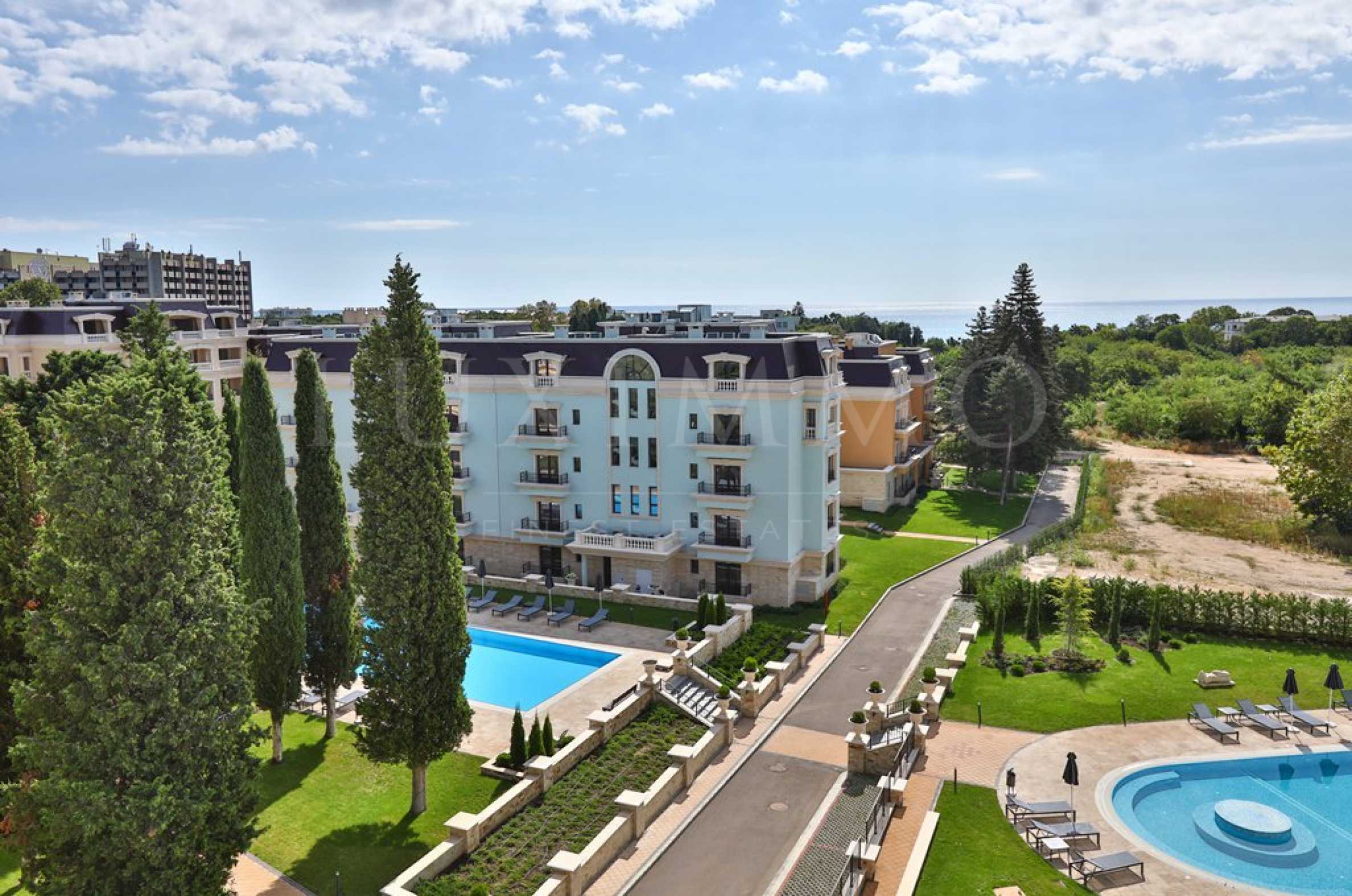 Състои се от пет сгради с практично разпределени апартаменти, а за пълноценната почивка са предвидени 3 открити басейна с плажна зона, луксозен SPA център, богато озеленена паркова среда, детски кът, паркоместа.