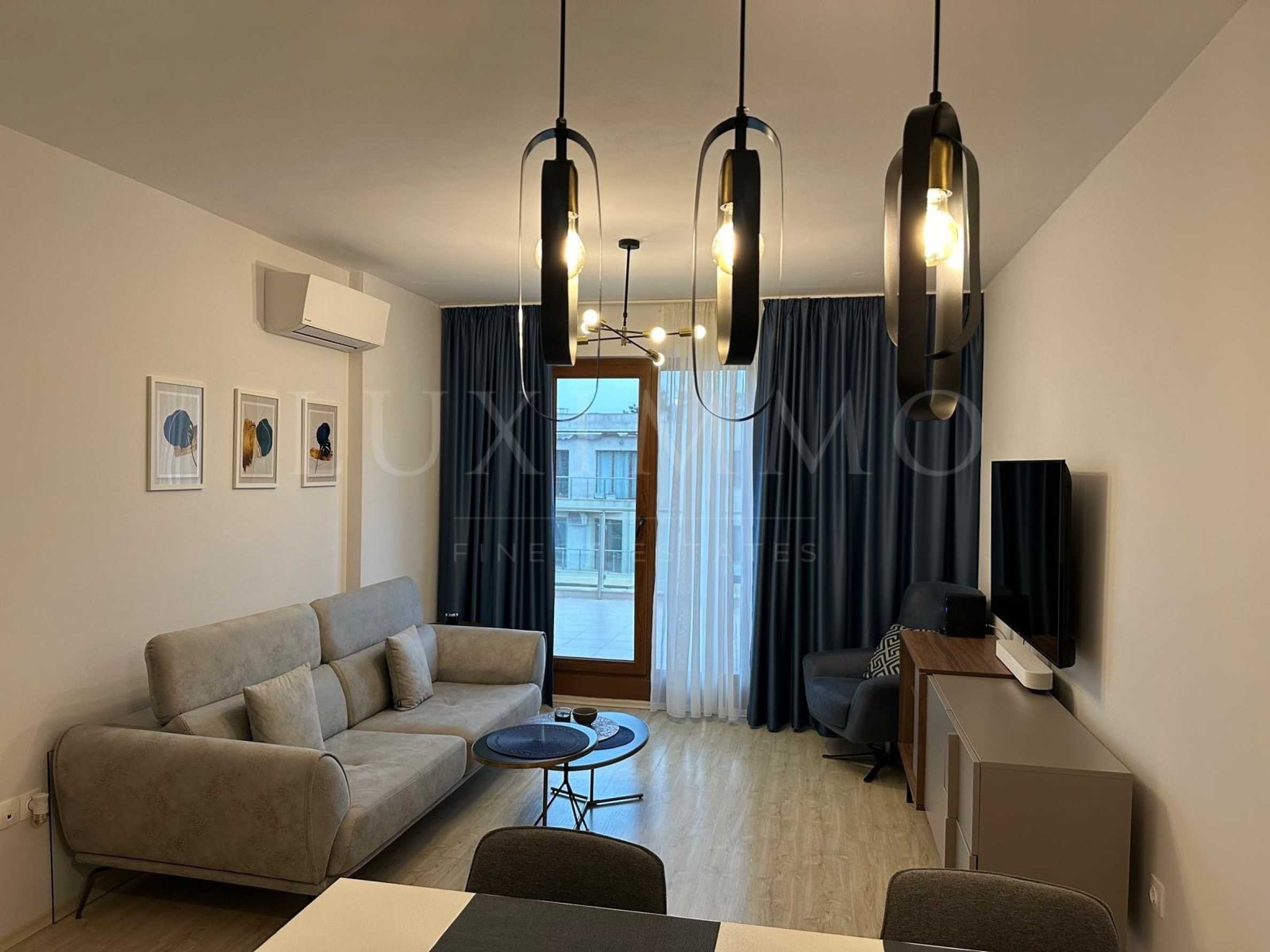 Жилището е напълно обзаведено с функционални мебели и електроуреди от реномирани производители. Дограмите са PVC, с двоен стъклопакет, подовете са изпълнени с гранитогрес и ламинат, а стените са боядисани с латекс.