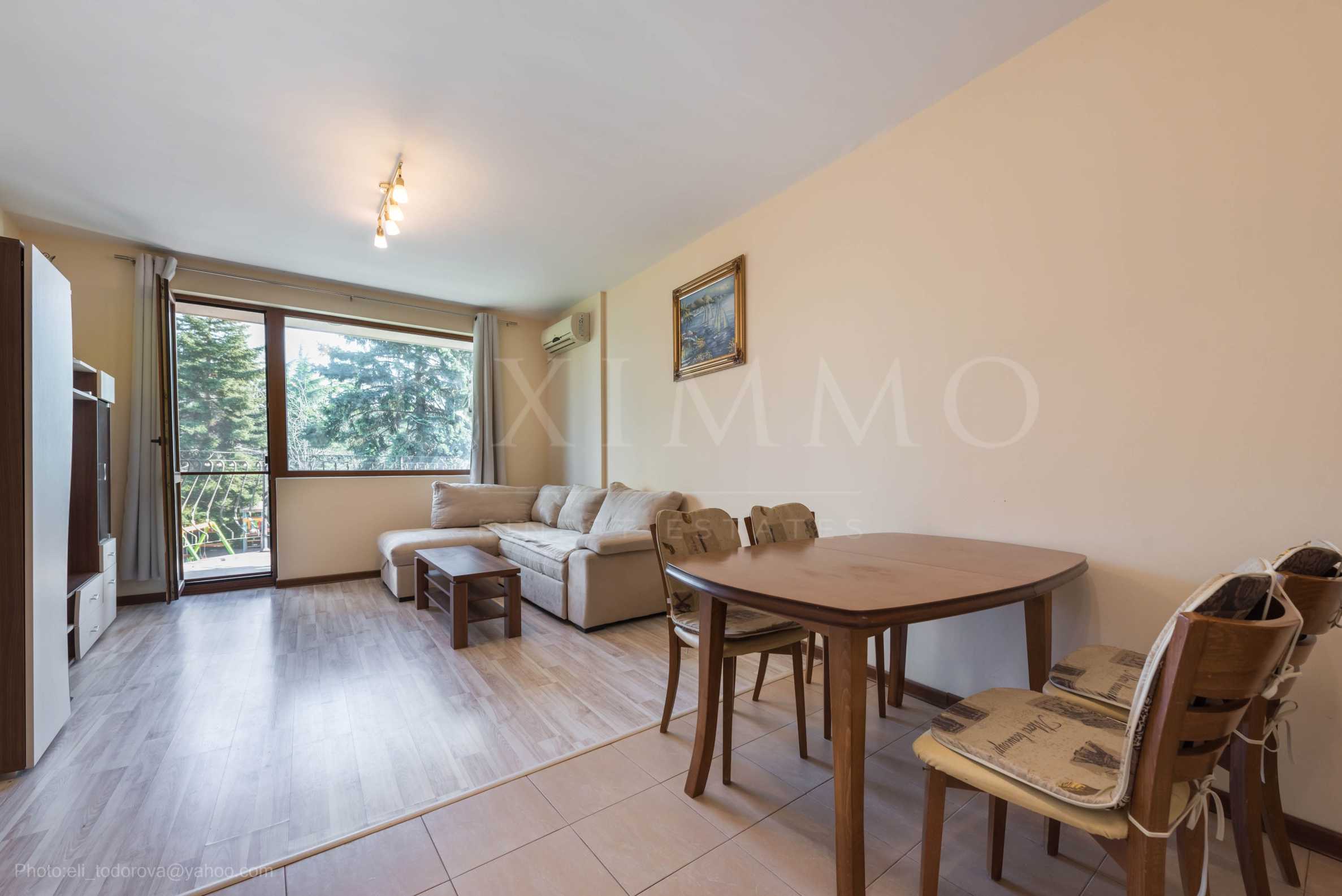 Предлагаме Ви апартамент в луксозен комплекс с открит басейн, алеи за разходка, озеленени площи, разположен е в естествен парк на 500 метра от брега на морето и плажната ивица. Жилищният комплекс е с категория "4 звезди" и предлага: видеонаблюдение, басейн, видеодомофонна система, климатизация, кабелна телевизия, почистване и паркоподдържане, паркинг.