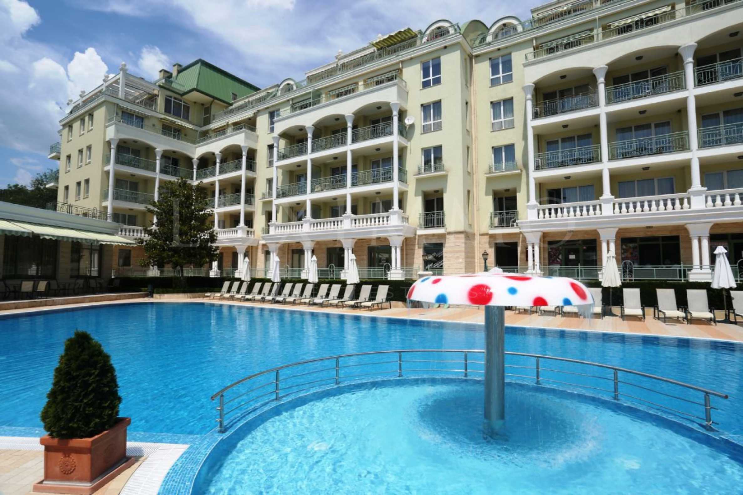 Предлагаме Ви тристаен напълно обзаведен апартамент в спокоен и с всички удобства луксозен комплекс в уникалния курорт „Св. Константин и Елена“ до град Варна. Комплексът работи целогодишно и предоставя денонощно ползване на СПА център и басейн с минерална вода. На територията на комплекса има ресторант, който също работи през цялата година.