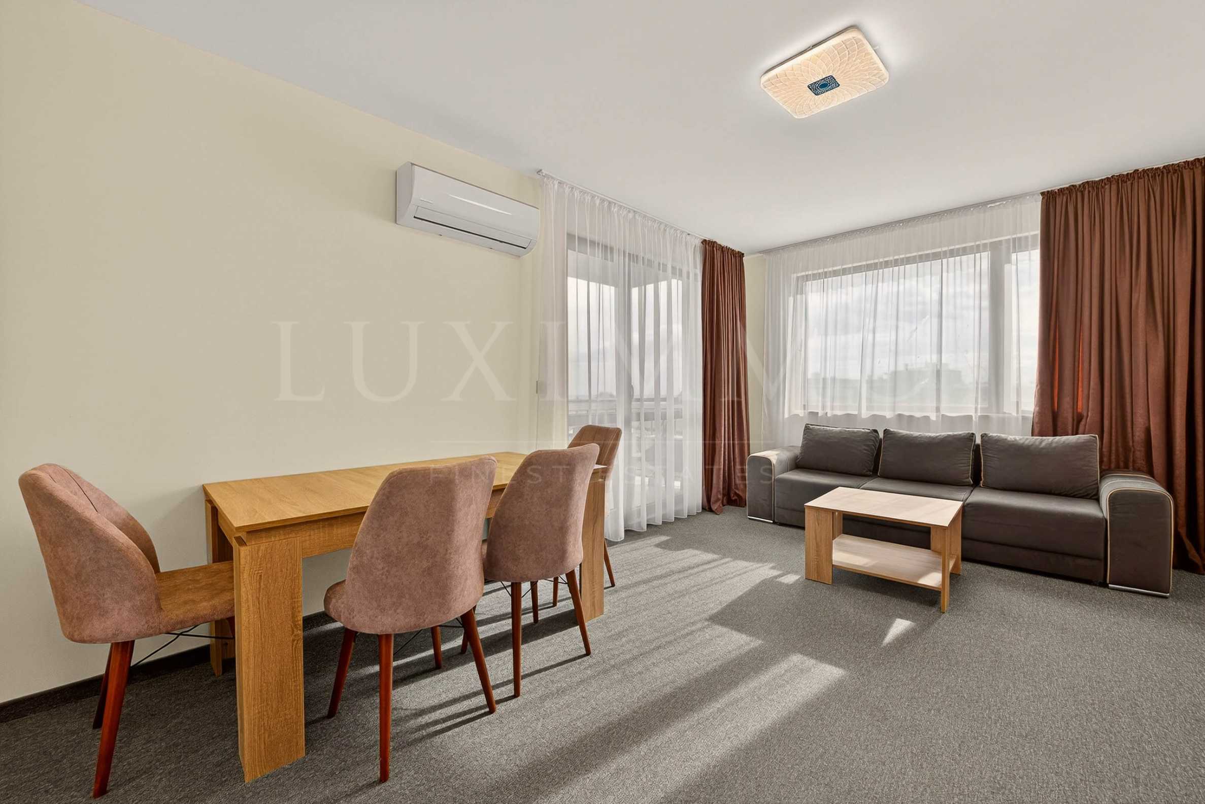 Апартаментът се продава във вида от снимките, напълно обзаведен и оборудван с всичко необходимо за живеене като мебели и ел. уреди. В комплекса има още варианти на двустайни и тристайни апартаменти с възможност за закупуване по БДС или завършени "до ключ".