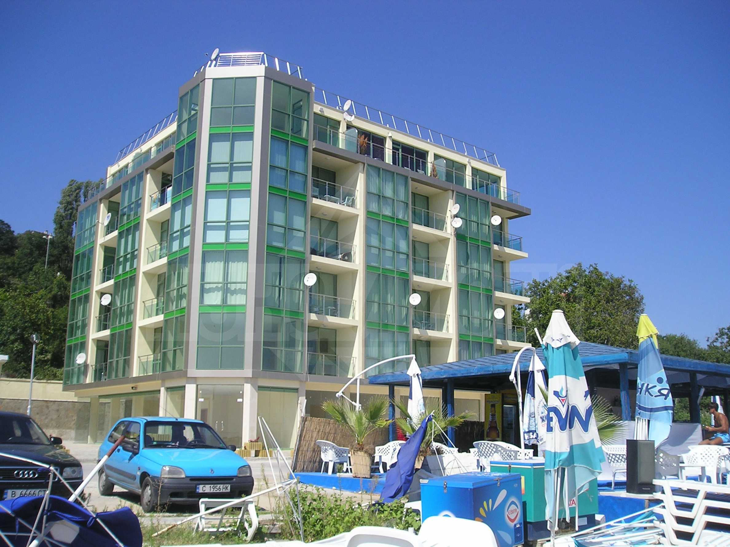 Състои се от: входно антре, спалня, хол с кухненски бокс, баня и тераса с невероятна гледка към морето и плажа.