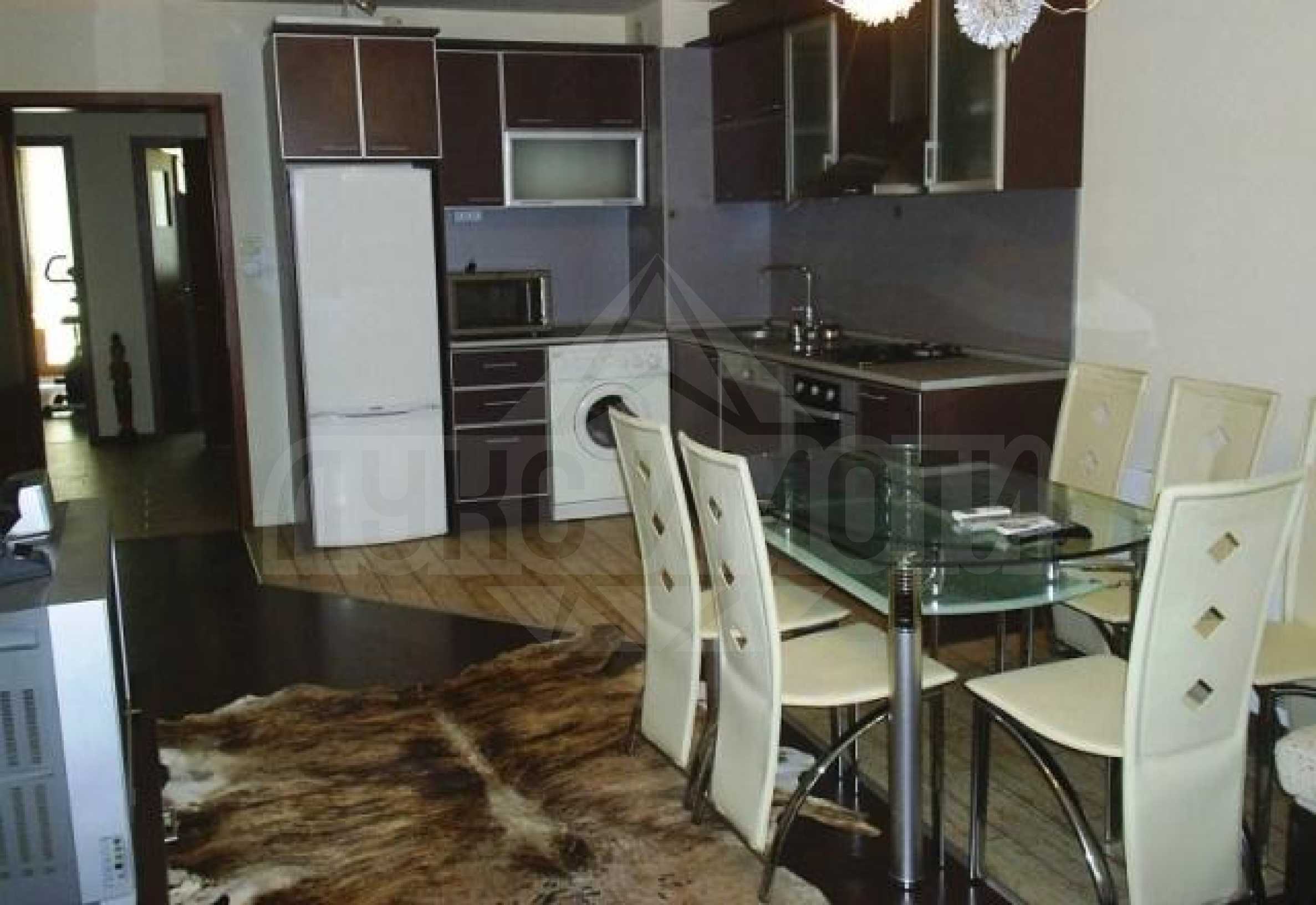 Апартаментът е с функционално разпределение и е разположен на първи жилищен етаж, в жилищна сграда с луксозно завършени общи части. На площ от 100 кв.м. са разположени многофукционален дневен тракт с кухненски бокс, две спални, санитарно помещение, антре, две тераси. Жилището е напълно oбзаведено и оборудвано. Санитарното помещениe е луксозно завършено и оборудвано с фаянс, теракот, санитария, джакузи и аксесоари.