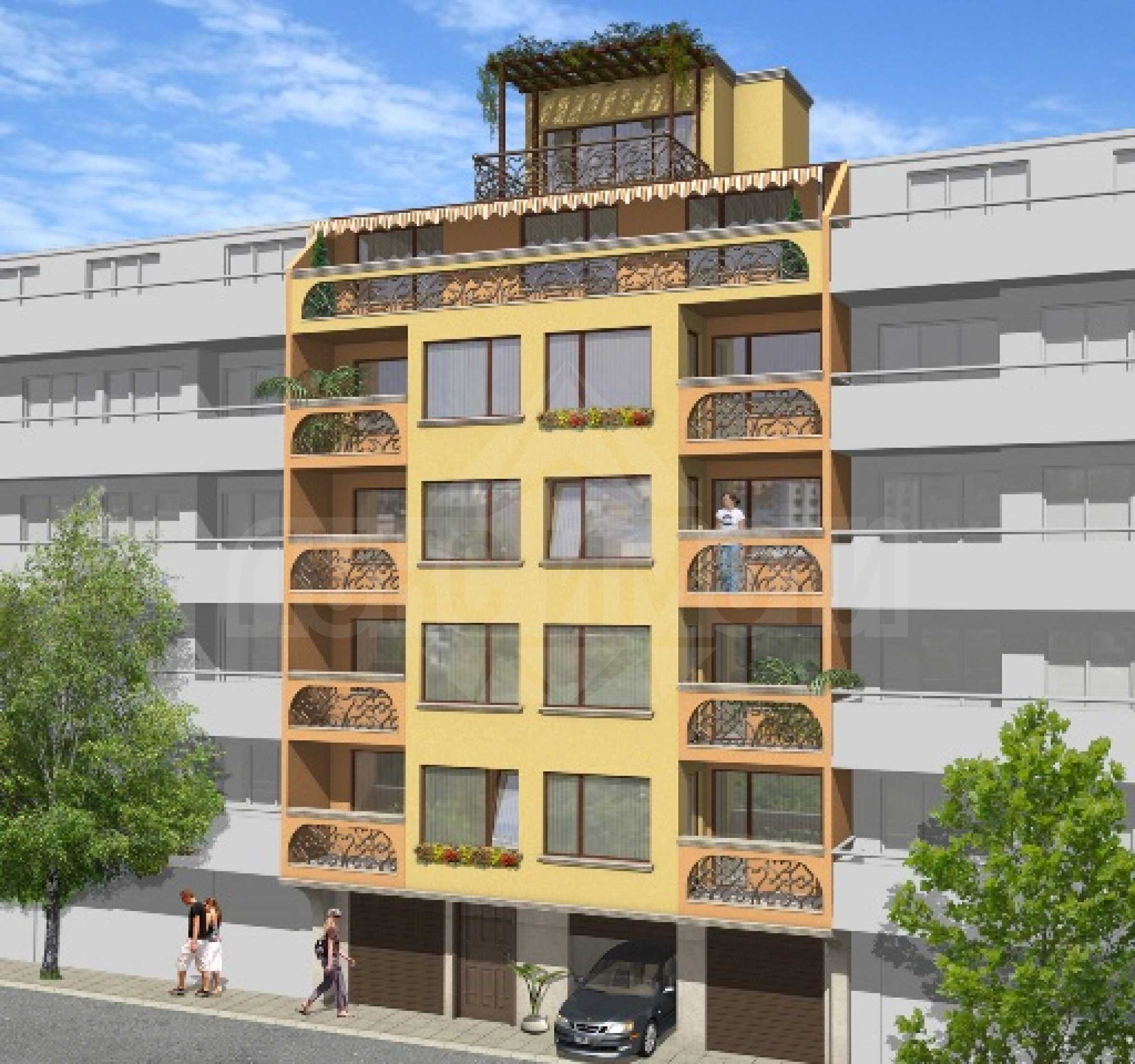 Сградата се състои от един партерен и шест жилищни етажа. На всеки жилищен етаж има по три апартамента с квадратури от 35 до 95 кв.м. съответно с 1 или 2 спални. На последния етаж е изградена кула с прекрасна панорамна тераса. Партерният етаж е зает от офис и гаражи, а в сутерена са разположени изби и паркоместа, обслужвани от автоплатформа. Ориентирана е на юи/сз и е разположена на две тихи улици. Ще има изградена климатична инсталация в цялата сграда.