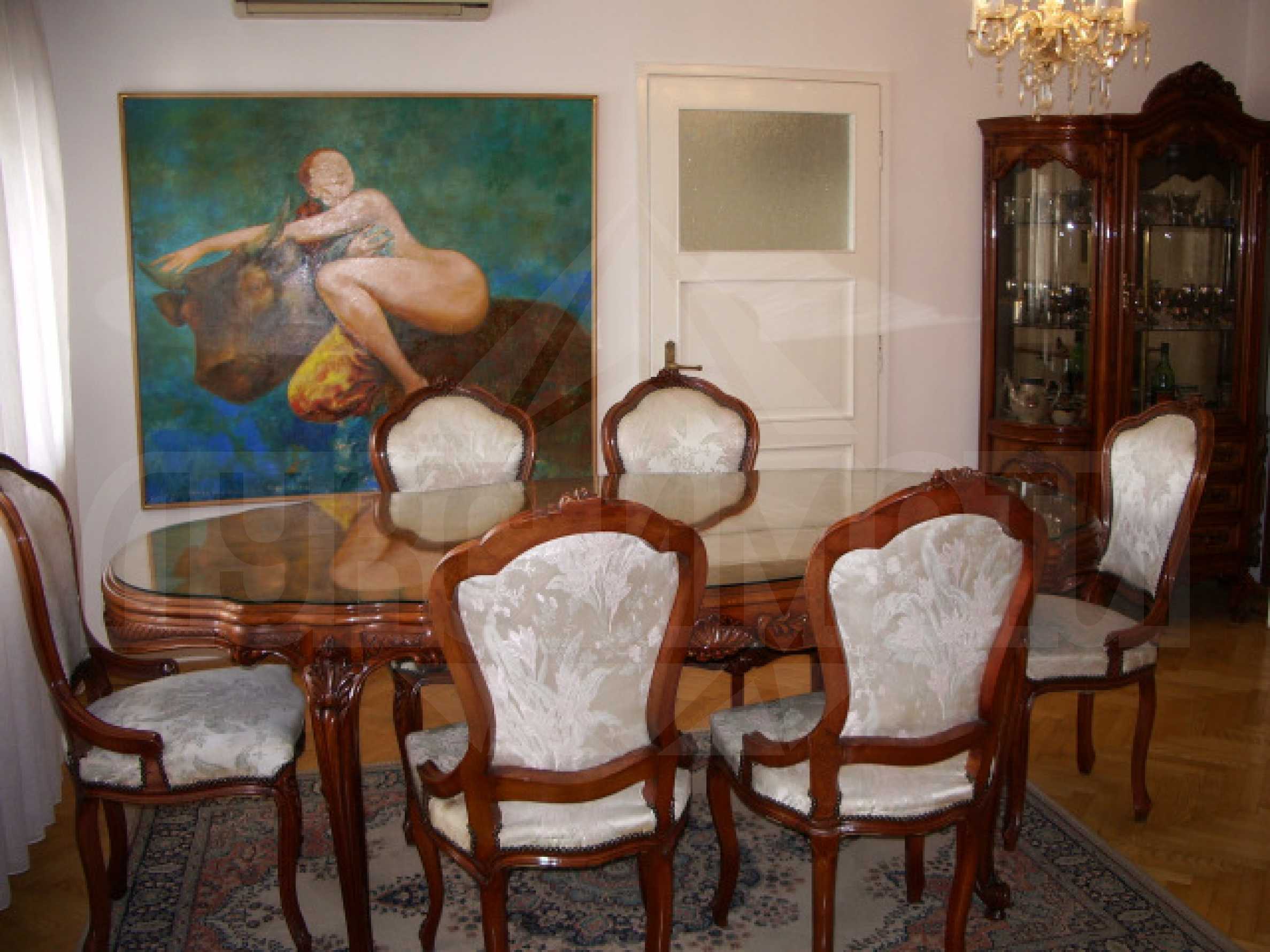 Многостаен апартамент в жилищна сграда, разположена в Гръцка махала и в близост до Морската градина на Варна. Апартаментът, който ви предлагаме, се намира на трети жилищен етаж и е с площ от 144 кв. м., функционално разпределени по следния начин: антре, просторна холова част и дневен тракт обзаведени в класически стил, кухня, три спални, две санитарни помещения - едното с вана, другото с душкабина, перално помещение, две тераси. Жилището е напълно обзаведено и оборудвано.