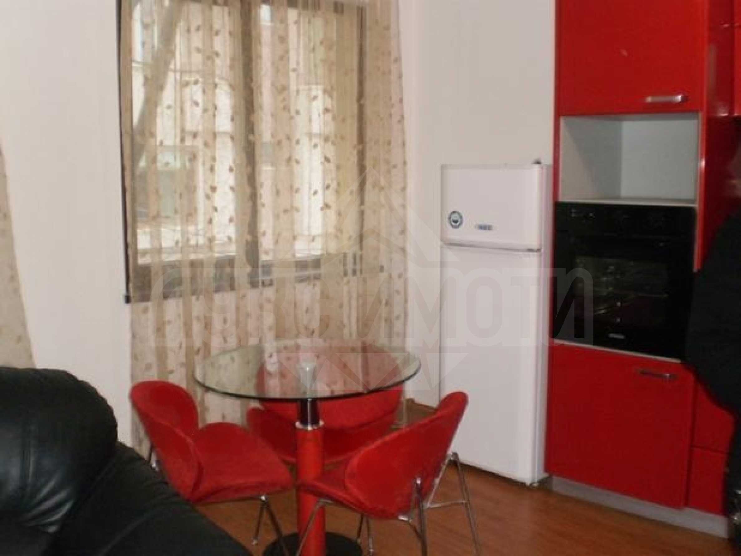 Предлагаме стилно обзаведен двустаен апартамент, в новопостроена жилищна сграда в района на Колхозен пазар. Районът е изключително комуникативен, в близост има търговски центрове, училища, клонове на банки, магазини и офиси, автобусни спирки на градския транспорт. Тук се намира и най-големият градски пазар.