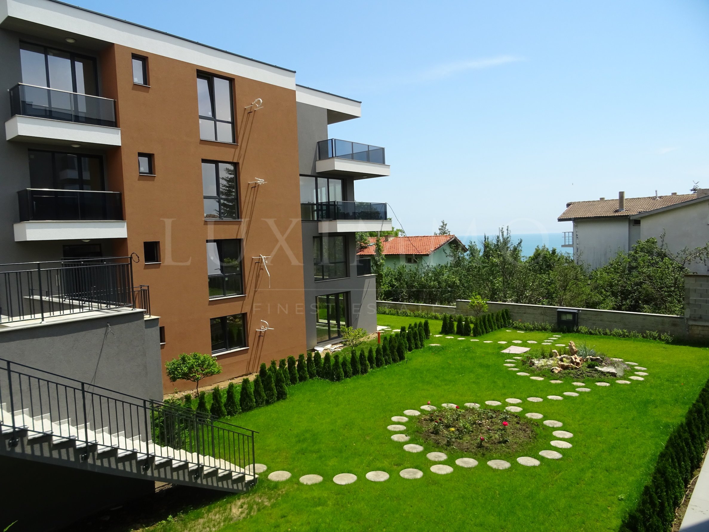 Предлагат се за продажба 2-стайни, 3-стайни от 67 кв.м. четири апартамента на партерно ниво с прилежащи градини от 200кв.м. за собствено ползване и два уникални пентхауса от 150 кв.м. с прилежаща покривна тераса от 30 кв.м. със спираща дъха морска панорама.