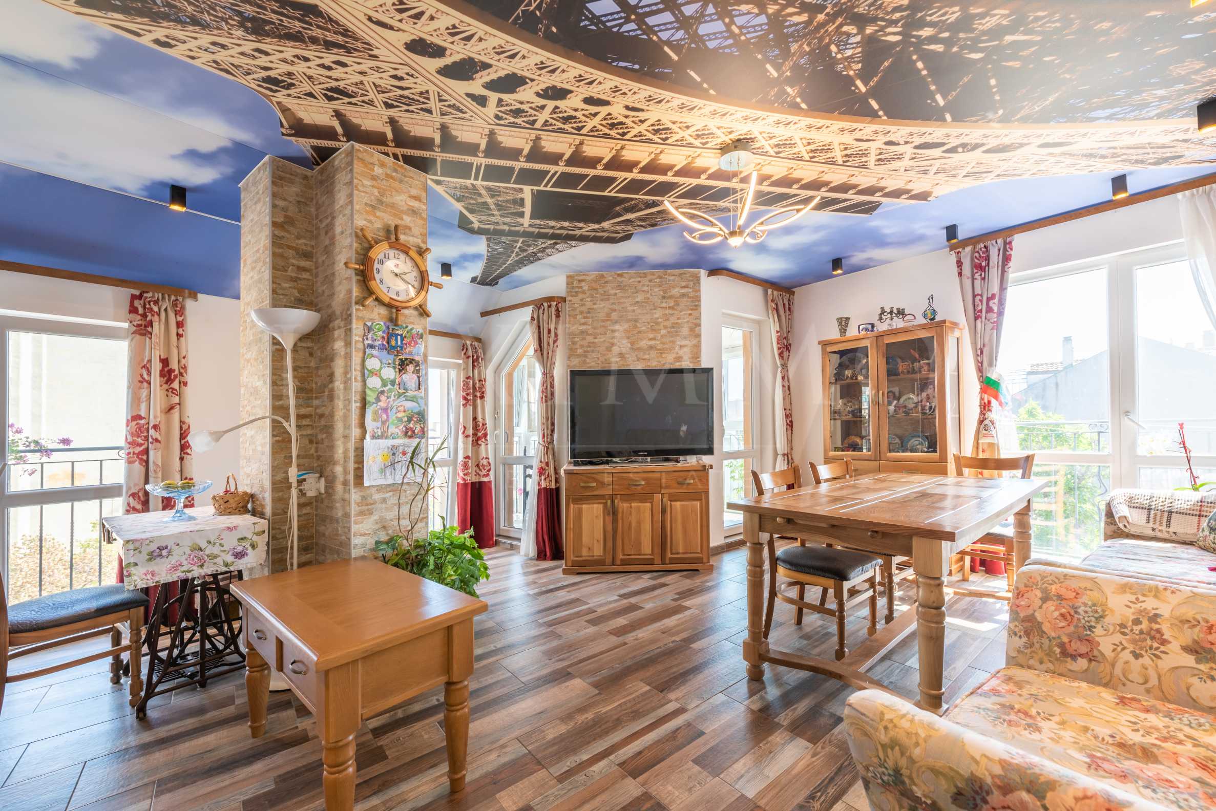 Жилището се предлага напълно обзаведено и оборудвано с висококачествени италиански материали, поръчкови мебели и висок клас уреди, сплит-система за климатизация.