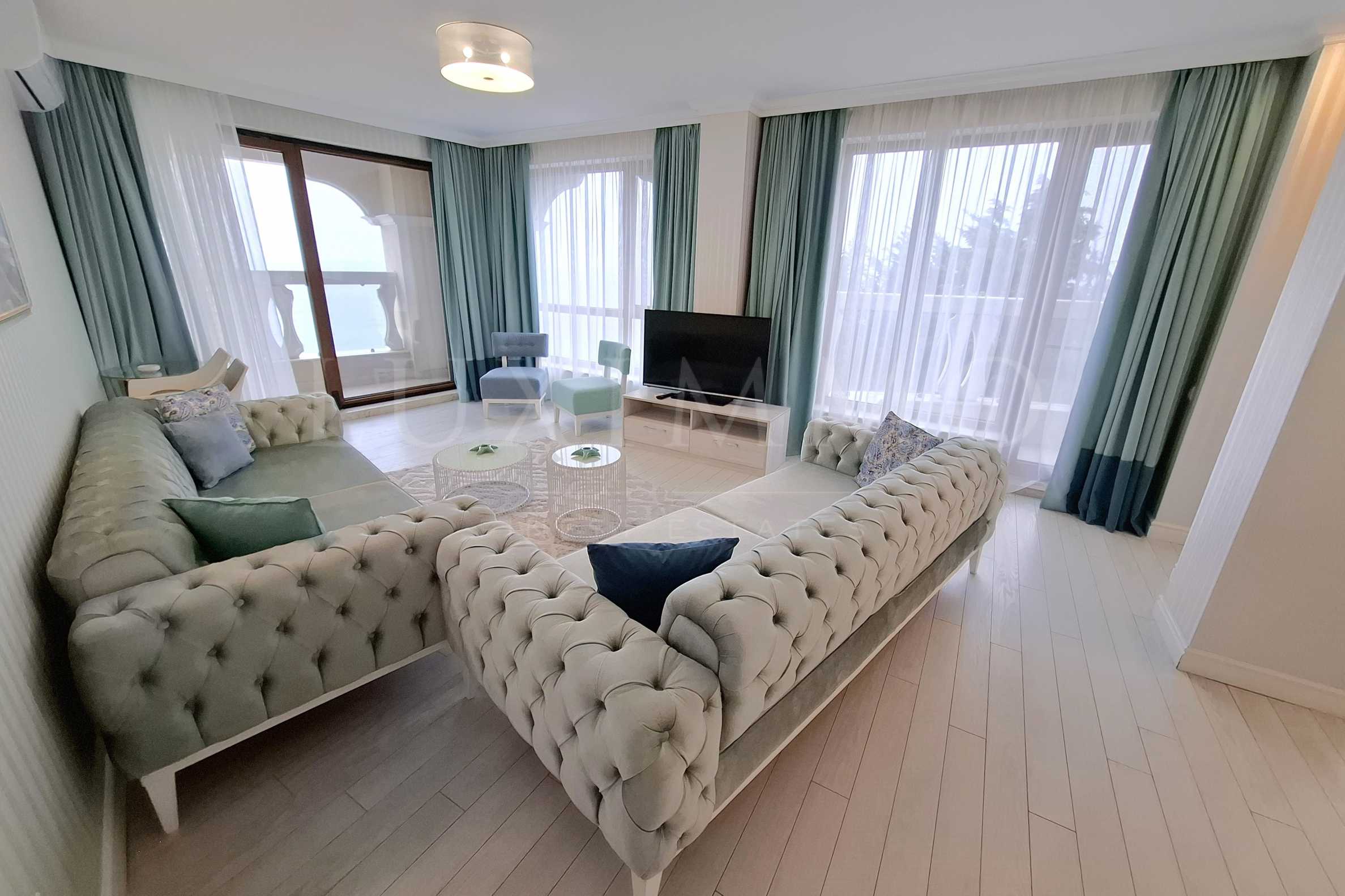 Апартаментът е напълно обзаведен и оборудван с всичко необходимо за живеене като мебели и ел. уреди. Идеален е за хора, които търсят комфорт, сигурност и близост до морето, без да се лишават от удобствата на града. Ако мечтаете да живеете на крачки от плажа и да се наслаждавате на тишина и уют – този имот е Вашето място.