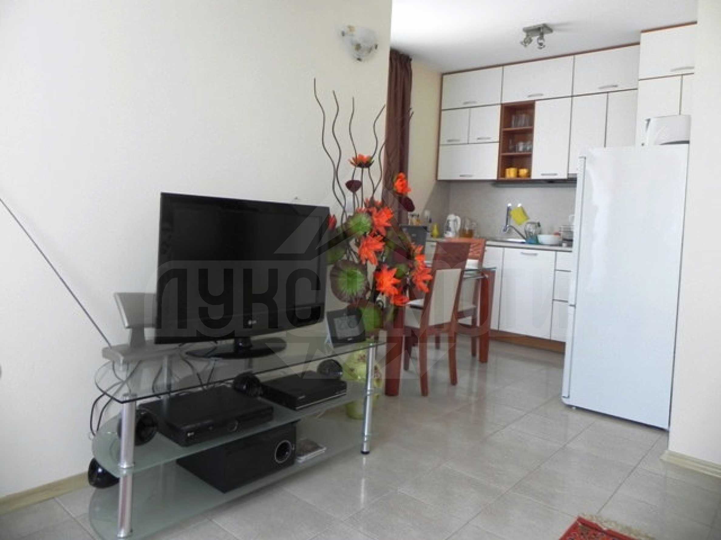 Жилището се продава напълно завършено и обзавеждането. Мебелите са направени по поръчка. Кухнята е снабдена с миялна машина, ел. котлони, микровълнова фурна, пералня.