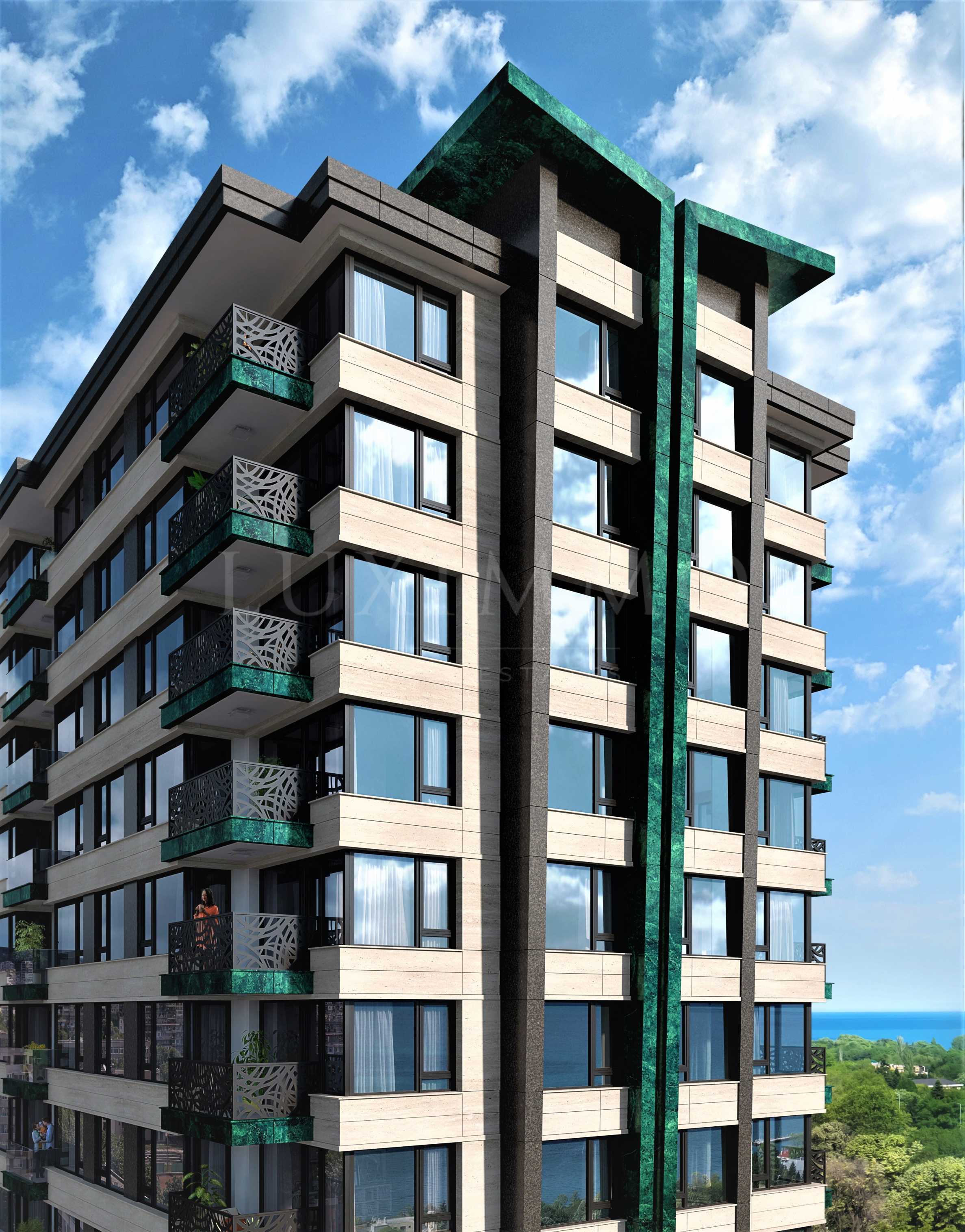 В строителството са заложени високотехнологични решения, използвани в луксозното строителство, с най-качествените материали на водещи компании в бранша и с най-висок клас топло-, шумо- и звукоизолационни характеристики. Фасадата е окачена, вентилируема, с три вида естествен камък – травертин, зелен мрамор и сив гранит. Освен атрактивната визия, каменните фасади притежават висока здравина и издържливост, а тухлите, които избрал инвеститор са с възможно най-голямата шумоизолация, ниска топлопроводимост, със защита от вибрации, което допринася за ниски разходи за отопление и охлаждане в процес на експлоатацията на жилищата.