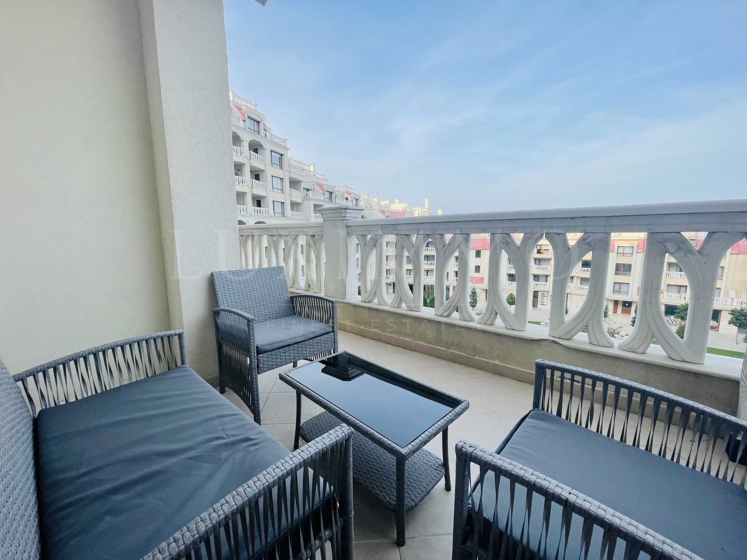 Плажът тук е дълъг, от километър и отстои на едноминутна разходка от комплекса, а в непосредствена близост е богатият на зеленина парк "Аспарухово". До удобствата в района, магазините, ресторантите и т.н. се стига изключително бързо и лесно. Спирката за градски транспорт е само на 300 м, а големият супермаркет - на 600 м от имота, а до центъра на града - 7.5 км.