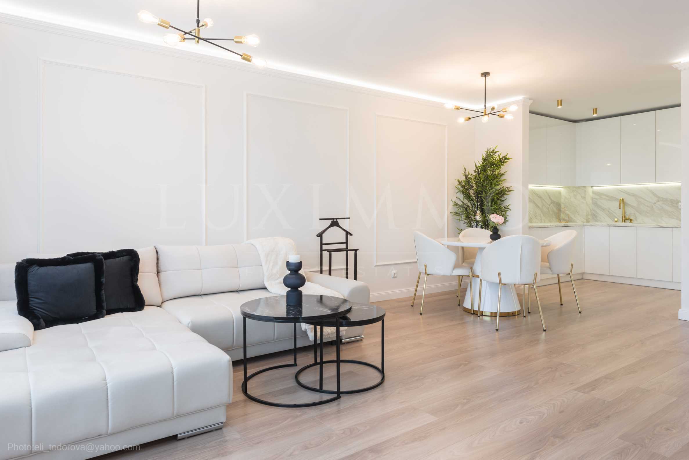 Имотът е обзаведен по дизайнерски проект, намира се на 3-ти етаж със западно изложение и се състои от: