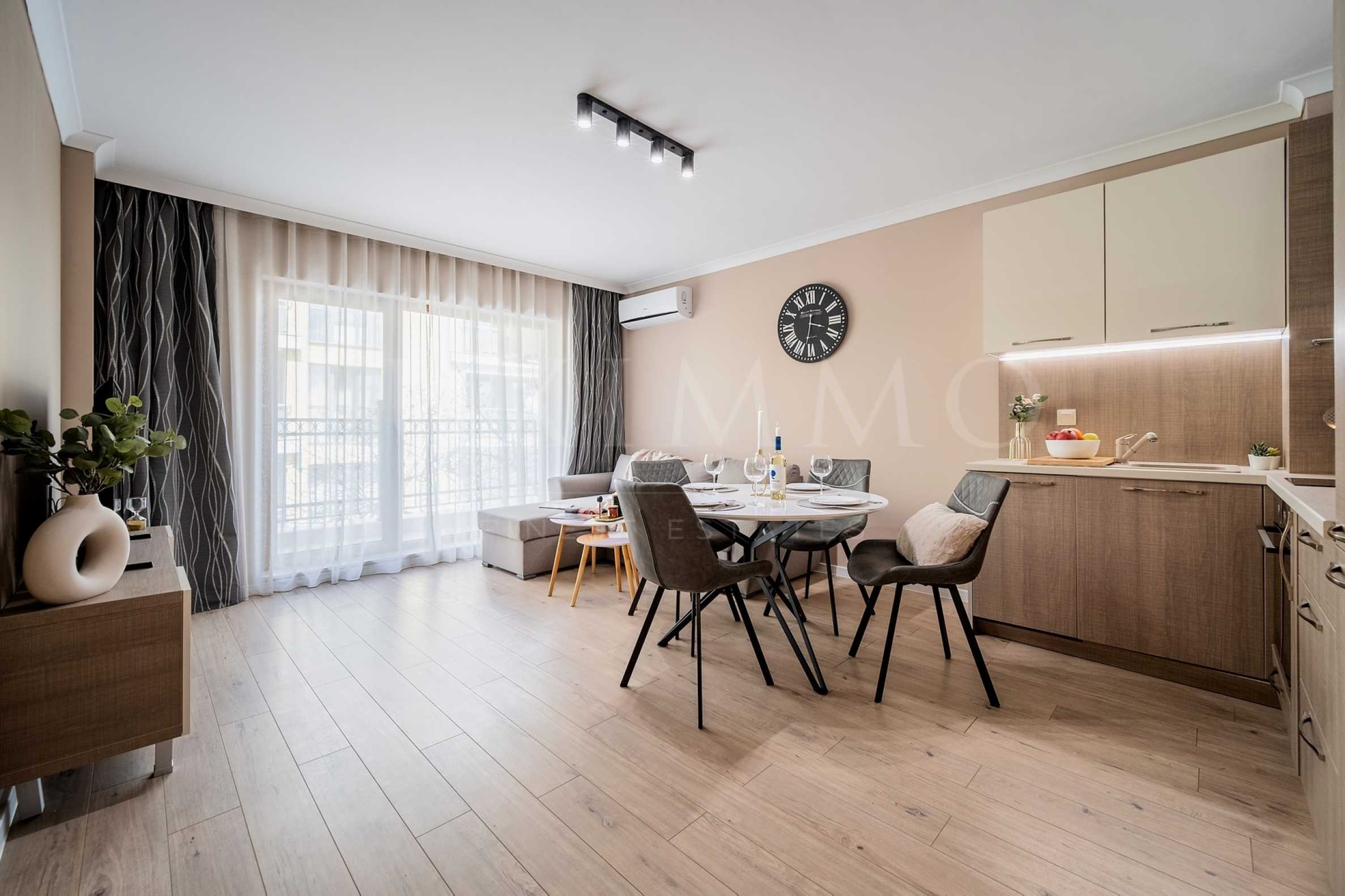 Жилището с обща площ от 60 кв.м е разположено на 2-ри етаж от 5 в нова сграда, въведена в експлоатация (с Акт 16), с луксозни общи части и асансьор.