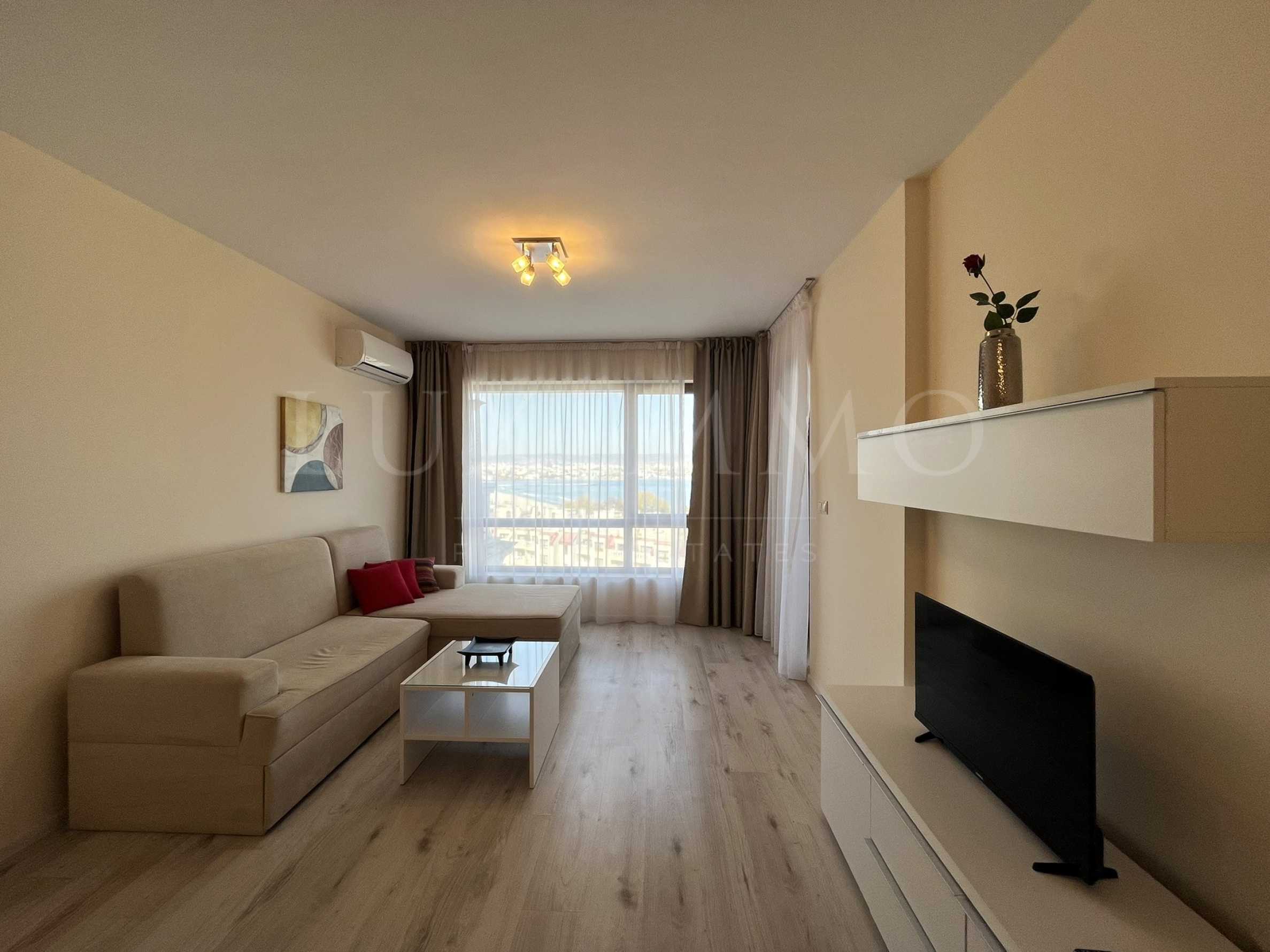 Имотът с обща площ от 80.21 кв.м се намира на 6-и етаж от 7 и разполага с прекрасна гледка към морето и града.