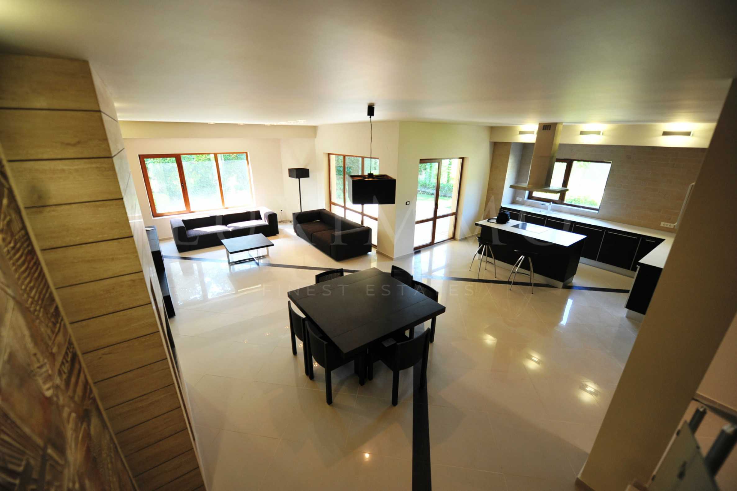 Следващото съществено предимство е луксозното, изпипано в детайли изпълнение на довършителните работи. Всички решения по обзавеждане, оформяне на интериора на къщите, комплектация на санитарните помещения, избора на осветителни тела са дело на професионални дизайнерски екипи. Избрани са мебели, осветителни тела и обзавеждане за бани от водещи италиански, испански, датски и германски производители-“Aparici”, “Royo Group”, “Galassia”, “Teuco”, “Hansa”, “Devi”. Къщата се предлага с пълно обзавеждане за първия етаж : антре, сервизно помещение за гости, кухня с вградени печка, керамичен плот и съдомиялна, аспиратор, хладилник, трапезария и мека мебел, камина, а за втория етаж: родителска спалня, дрешник, пълно оборудване на двете бани. В баните са монтирани вани с хидромасаж и душ-кабини с парна сауна. Без обзавеждане са оставени детските спални и кабинета/стаята за гости. Във всяка стая има изводи за телефон и TV. Отоплението и климатизацията на къщите се осъществяват с климатична VRV система.