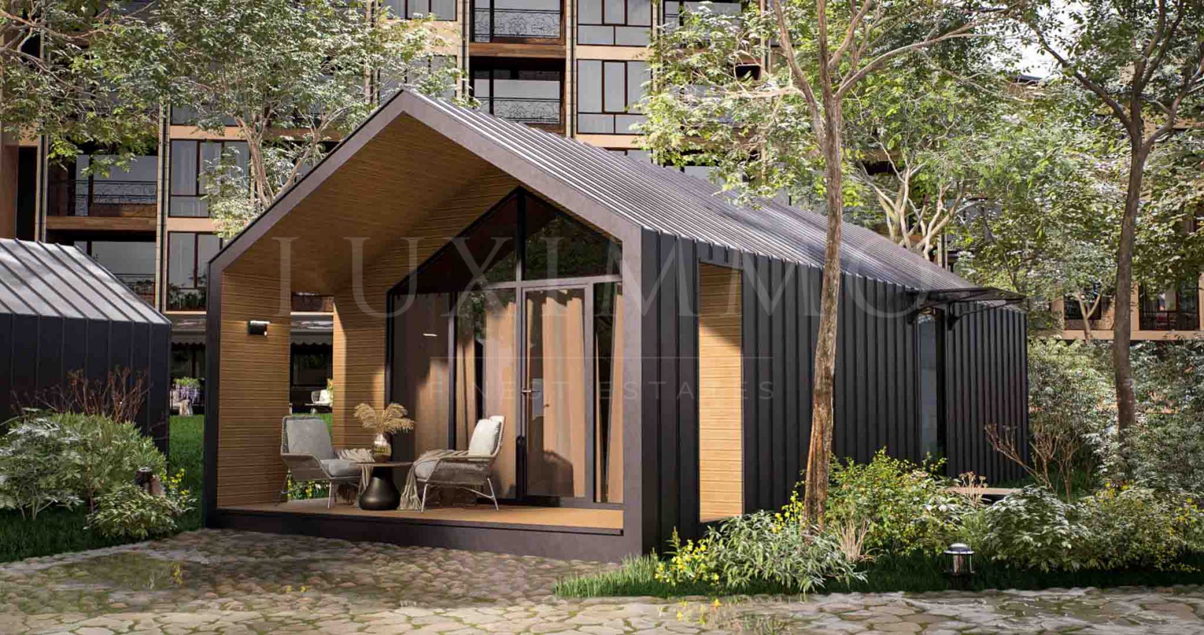 Представяме атрактивна нова къща за продажба, в комплекс със собствен парк, разположен на 15 мин пеша от плаж Кабакум.