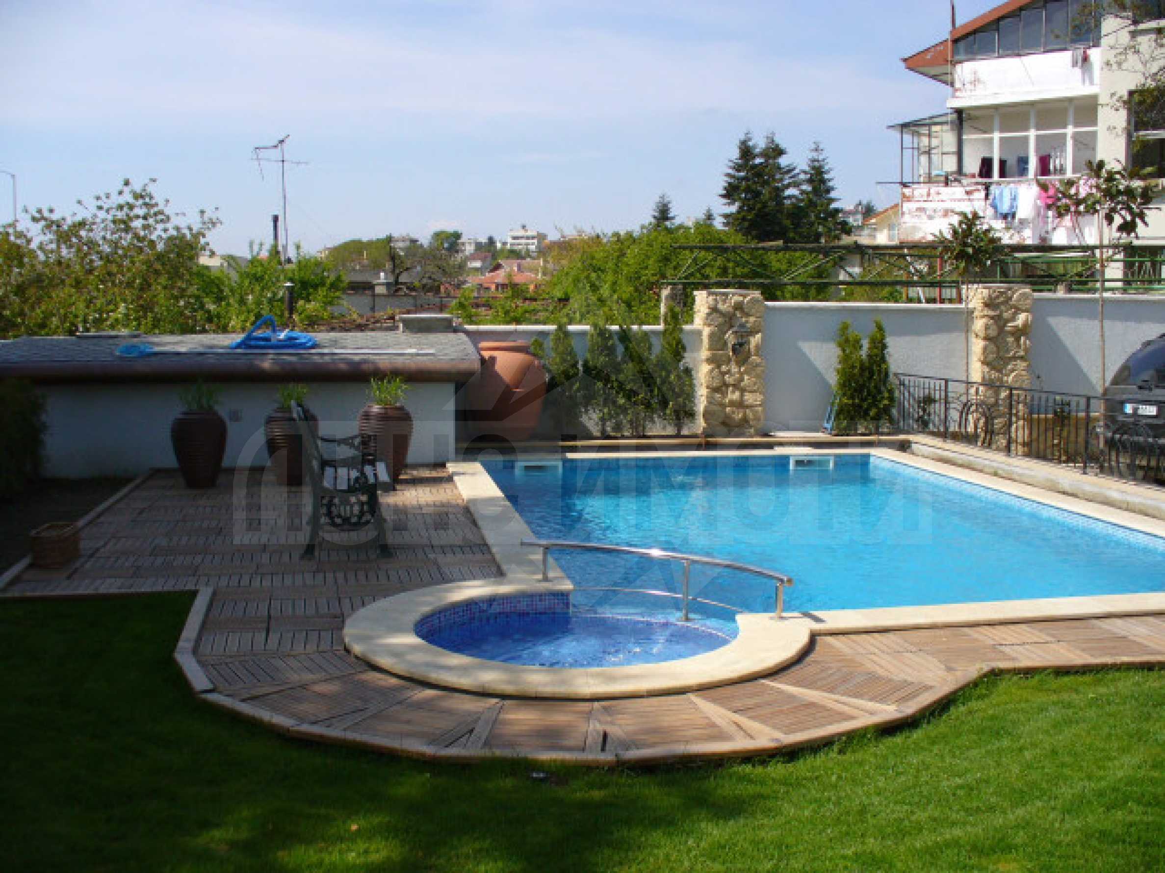 Предлагаме на своите клиенти изключително просторен и изискан дом със стилен интериор представен в РЗП от 600 кв. м. и аранжиран двор от 1 070 кв. м., разположен на магистрален път срещу курортен комплекс "Свети Свети Константин и Елена"в елитния район на в.з. Траката.