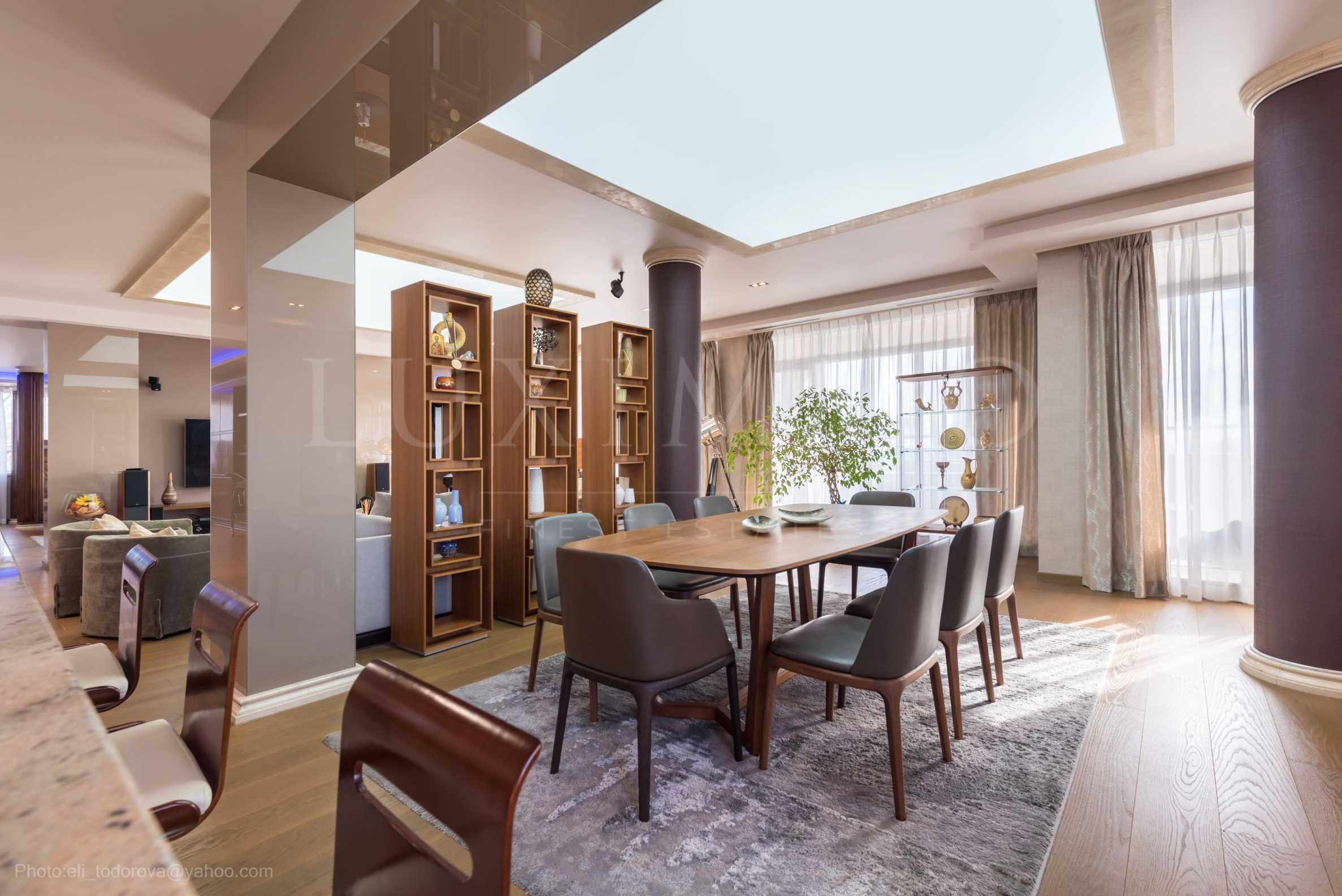 Апартаментът е красиво аранжиран с авторски картини на Васил Горанов. Обзавеждането и оборудването на имота е от най-висок клас, интериорът е обмислен до най-малкия детайл, жилището е за ценители.