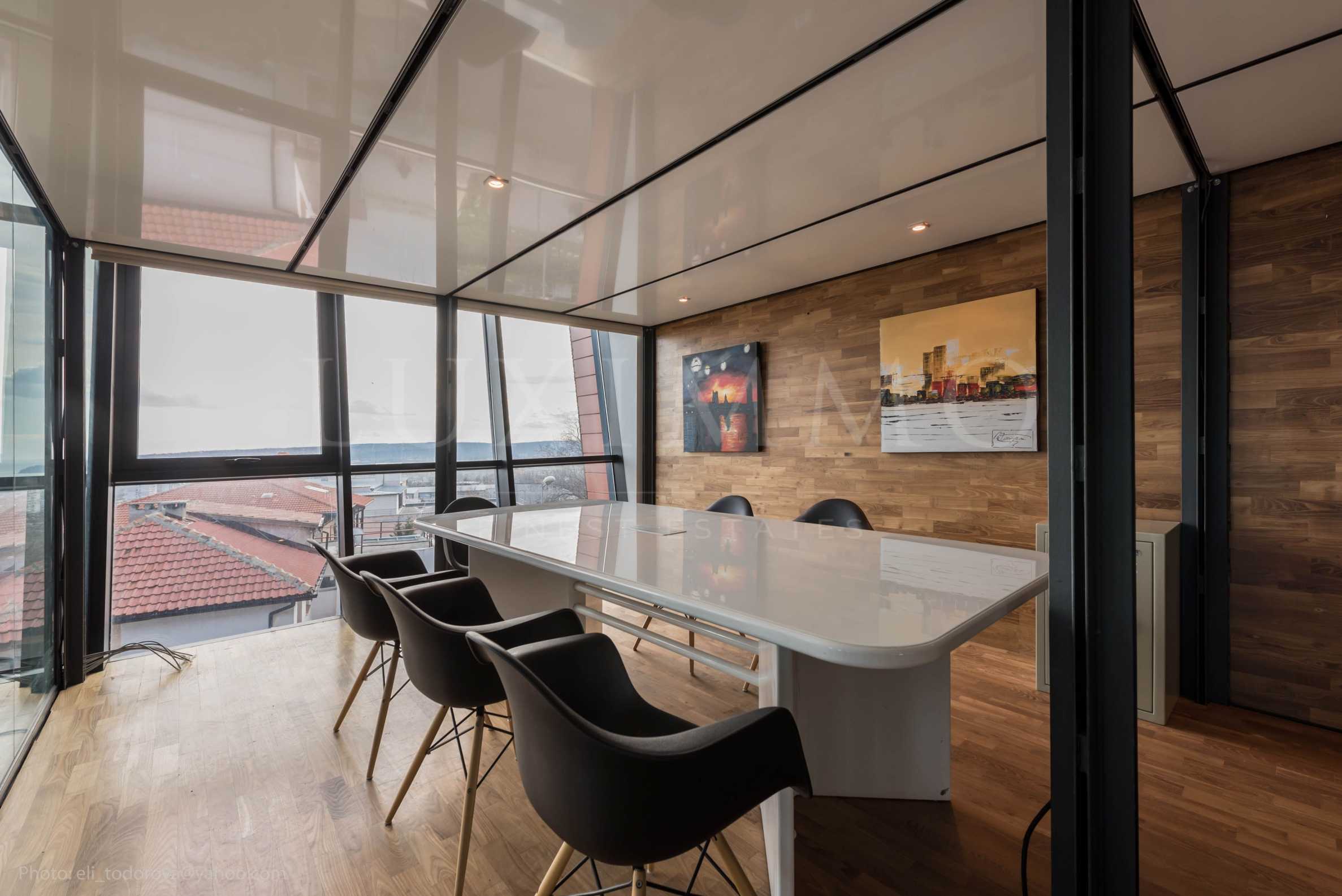 Бизнес помещението е многофункционално, с изобилие от естествената светлина и приятната гледка към морето. Благодарение на стъклените витрини няма нужда от използване на лампи в светлата част на деня, като нивото на светлината може да бъде регулирано посредством завеси, изключително подходящо офис пространство за кол център.