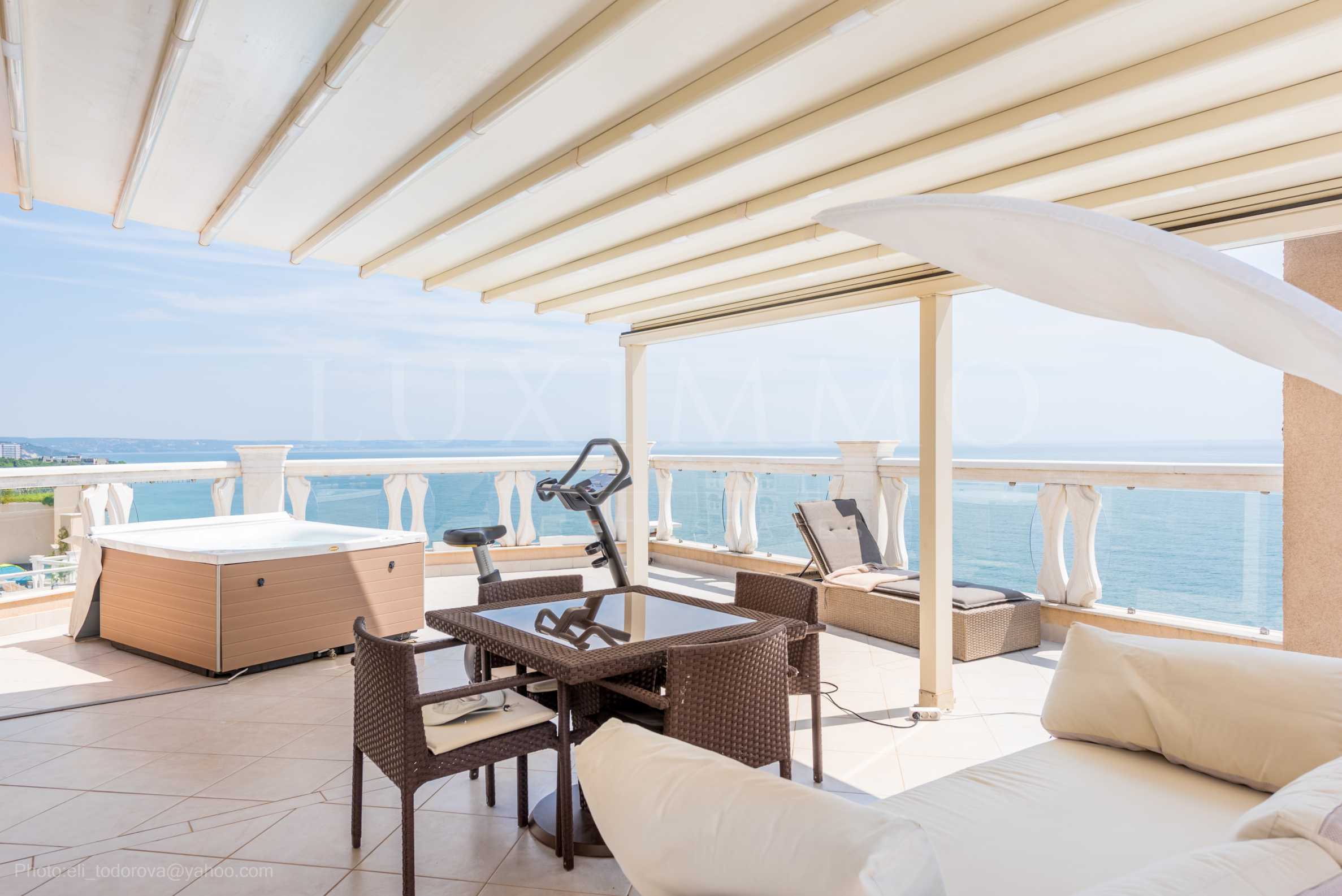Имотът е с обща площ 194.01 кв.м, разположен на 7-и етаж с панорамна гледка към морето.