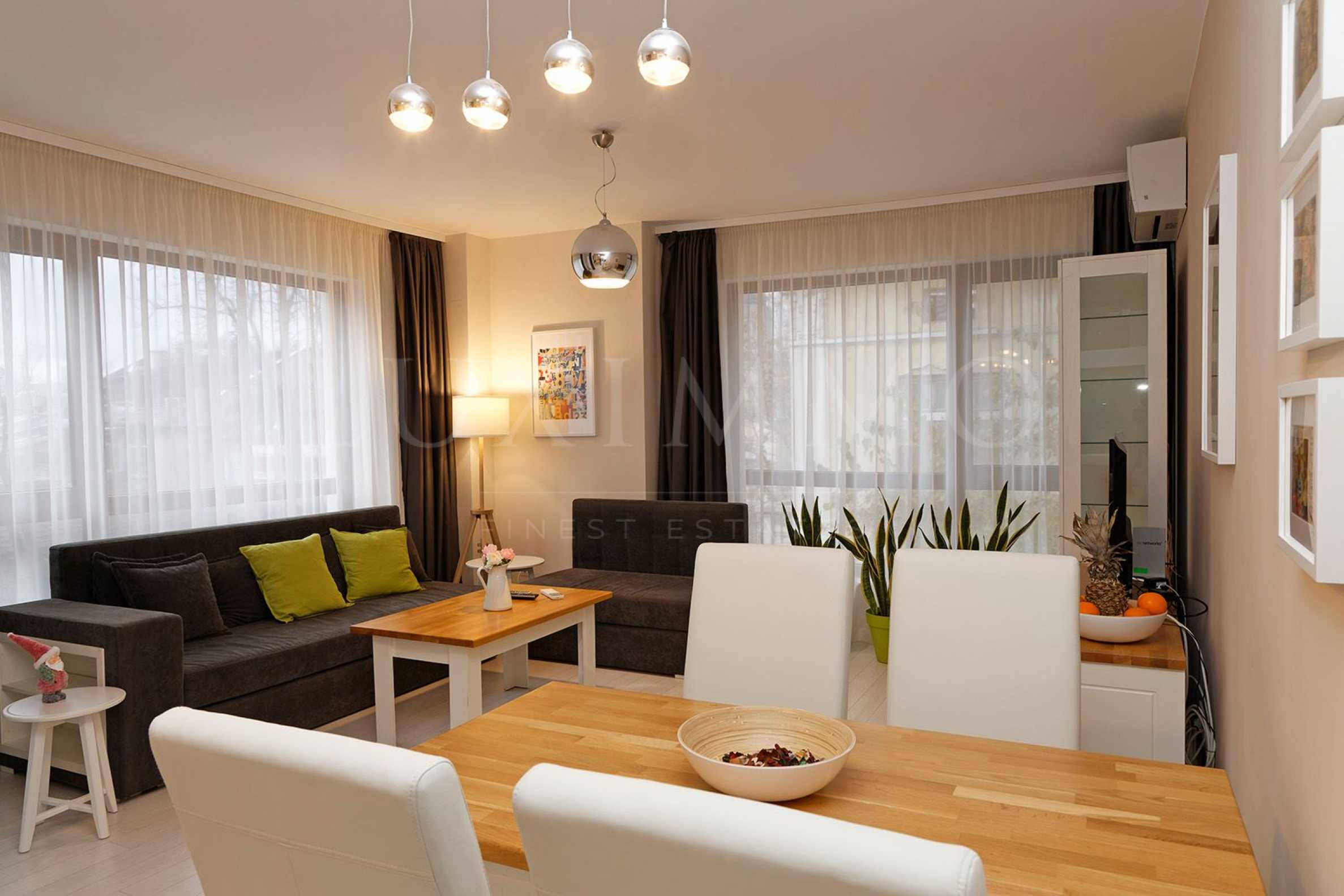 Апартаментът е стилно мебелиран и е напълно оборудван, с климатик във всяка стая, с видеодомофон.