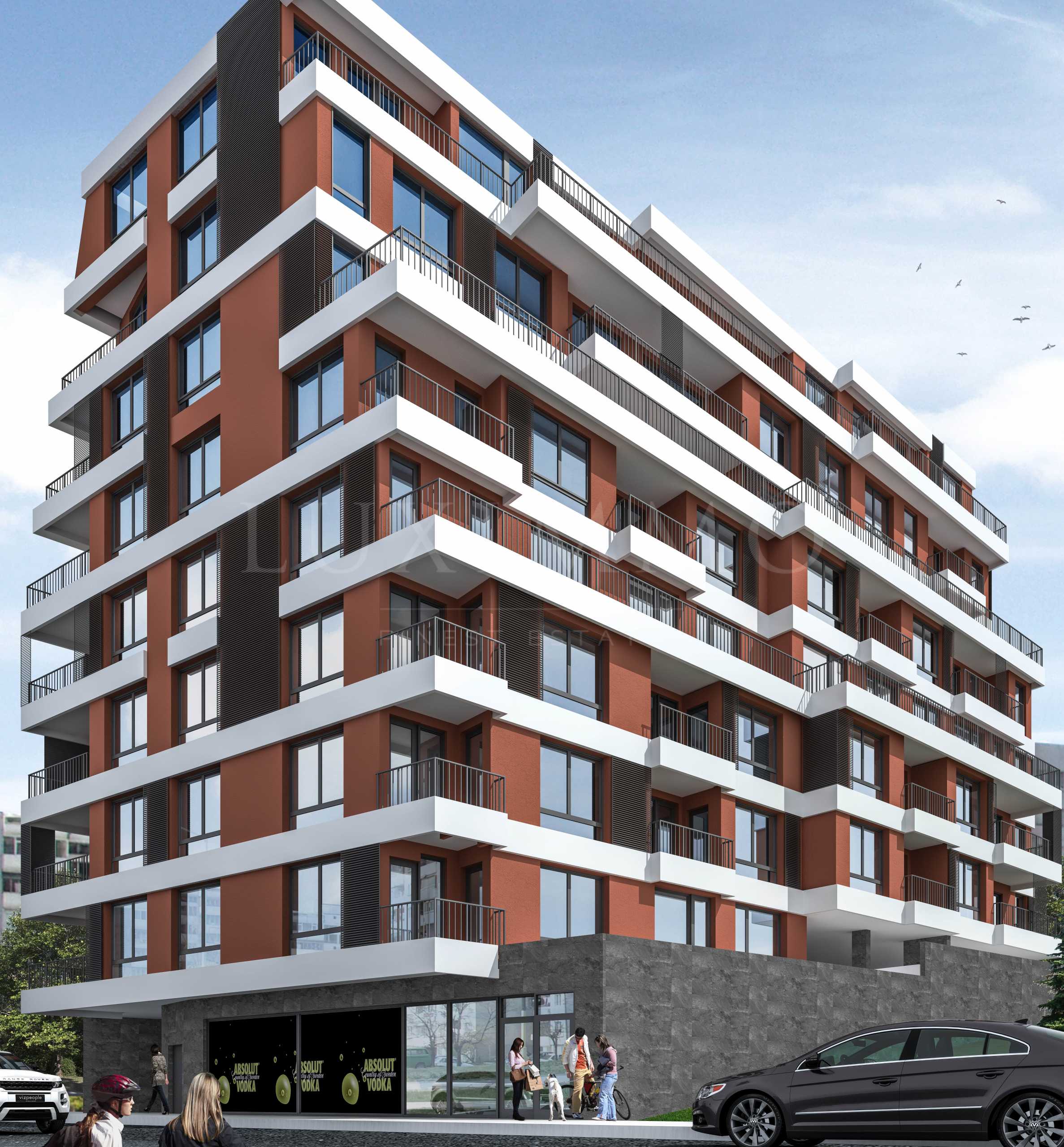 Сградата е проектирана на 8 етажа с общи части с подови настилки и стъпала от гранит, стени на декоративна мазилка и високоскоростни асансьори ORONA. Има избор от двустайни, тристайни и четиристайни апартаменти за продажба с разнообразни квадратури и функционални разпределения.