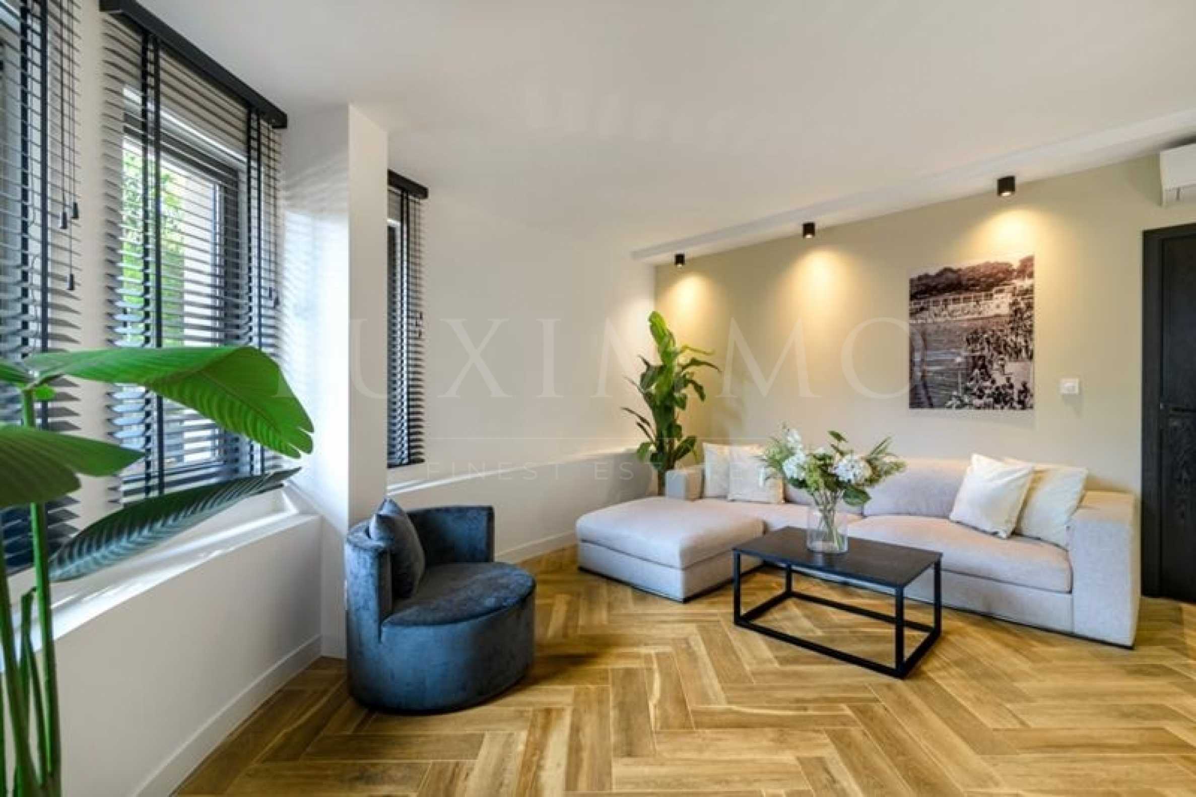 Луксозният имот е дело на европейски дизайнер и е оборудван и обзаведен до най-малкия детайл с първокласни материали и техники. Артистичният дизайн с черно-бели и бежови цветове предлага прекрасна комбинация от класика и съвременен стил, с подбрани бутикови мебели.