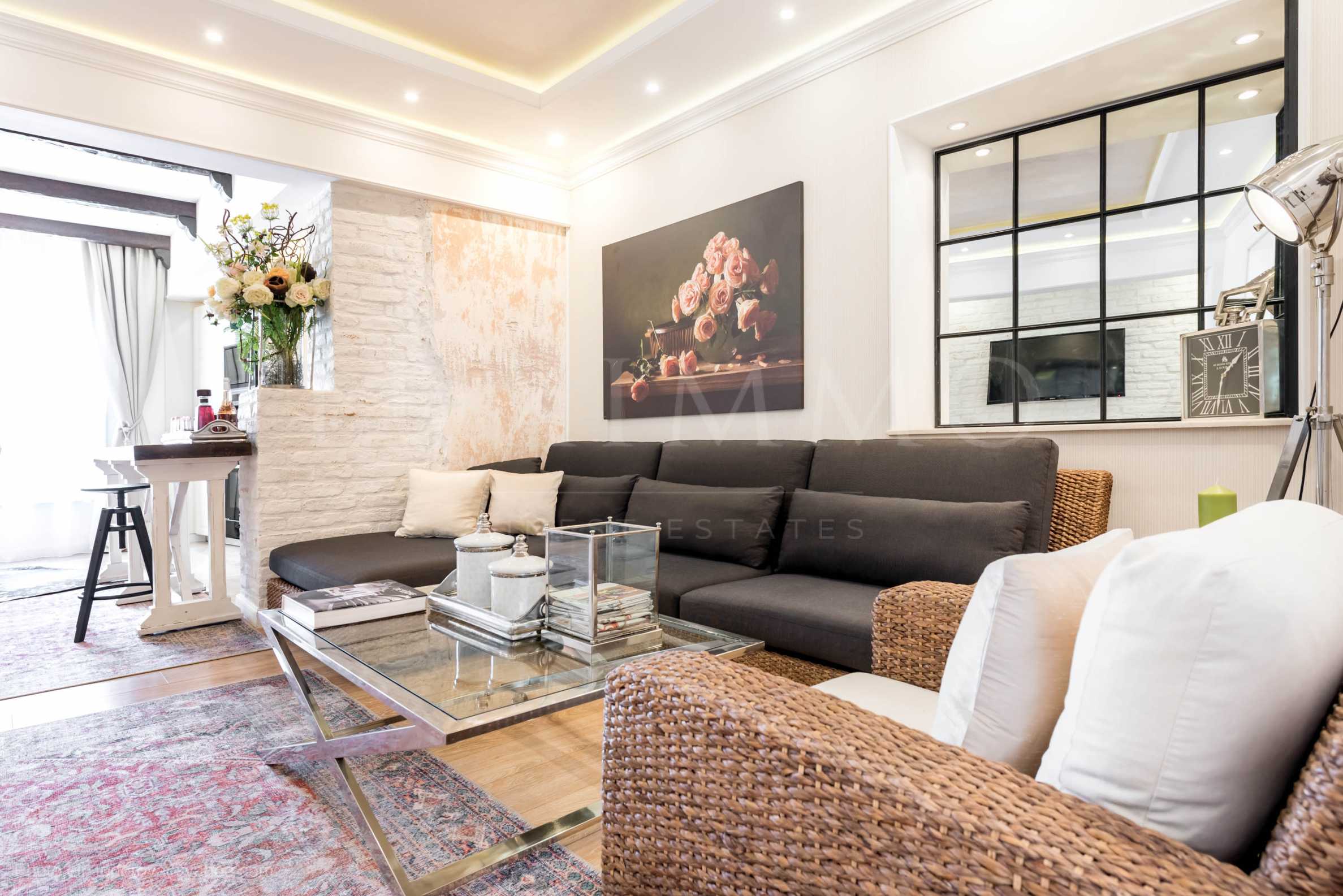 Интериорният дизайн на жилището отразява съвременните тенденции, като е създадена комфортна и модерна домашна атмосфера. Меките пастелни и бели тонове в съчетание с дизайнерските мебели, картини и аксесоари завладяват още от първия момент.