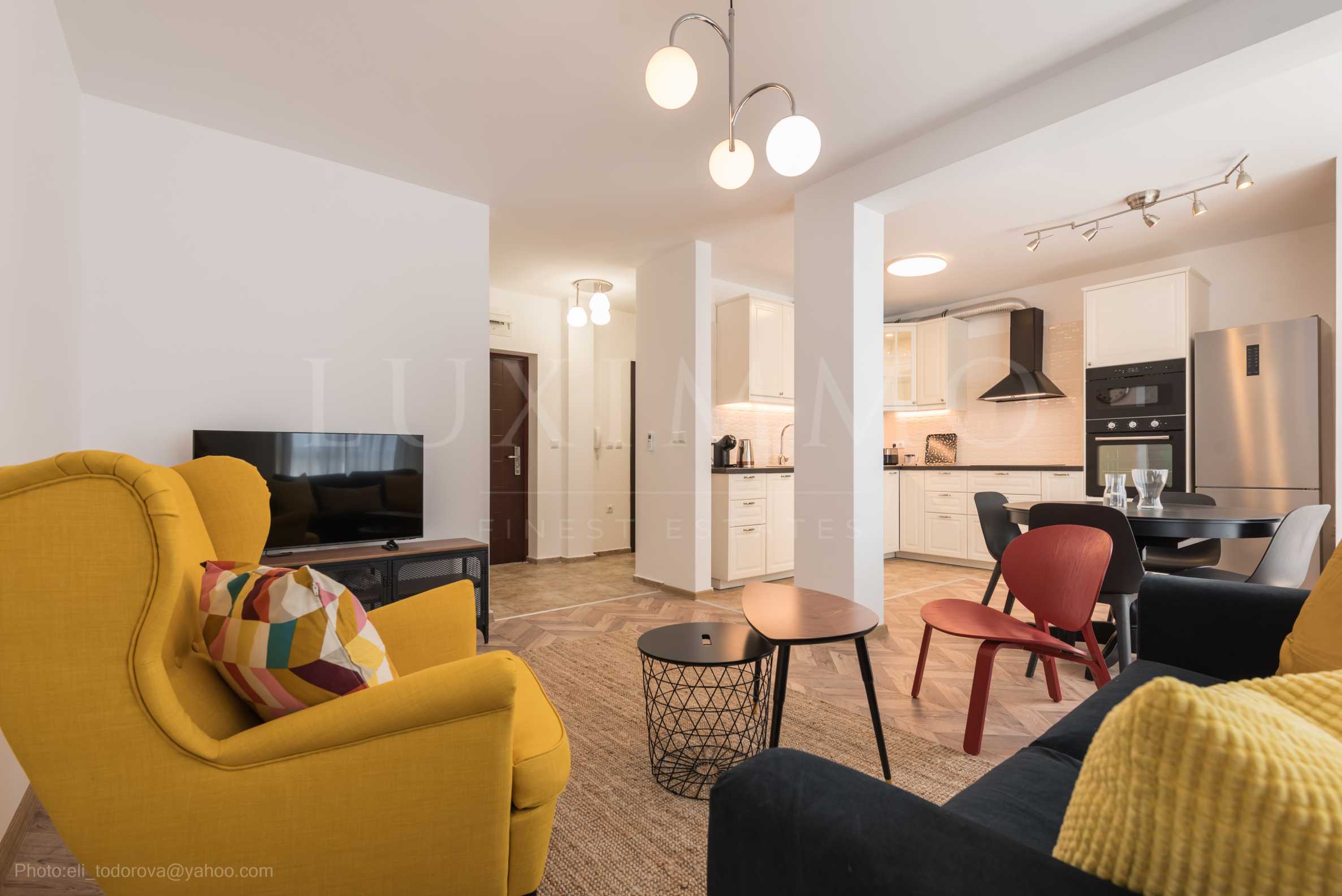 Апартаментът е съвременно и стилно обзаведен и качествено оборудван, с всичко необходимо за комфортен начин на живот. Имотът е функционално разпределен, с просторни и светли помещения.
