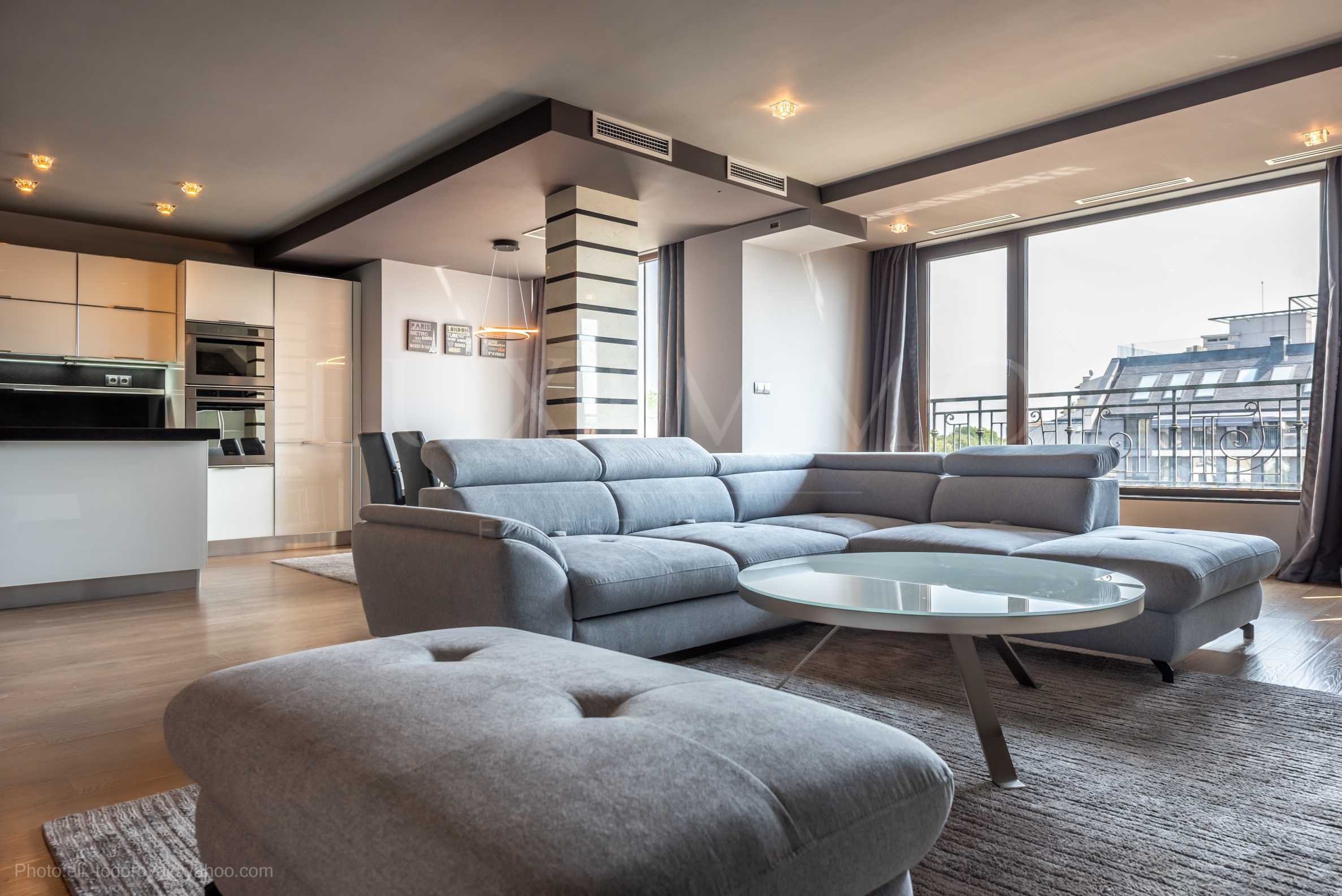 Панорамната гледка към морето в централната част на Варна е голяма рядкост за сгради в сърцето на града. Този супер просторен и стилен пентхаус, който представяме за под наем, предлага обширна градска гледка и гледка към морето, с топ локация на метри от Морската градина.