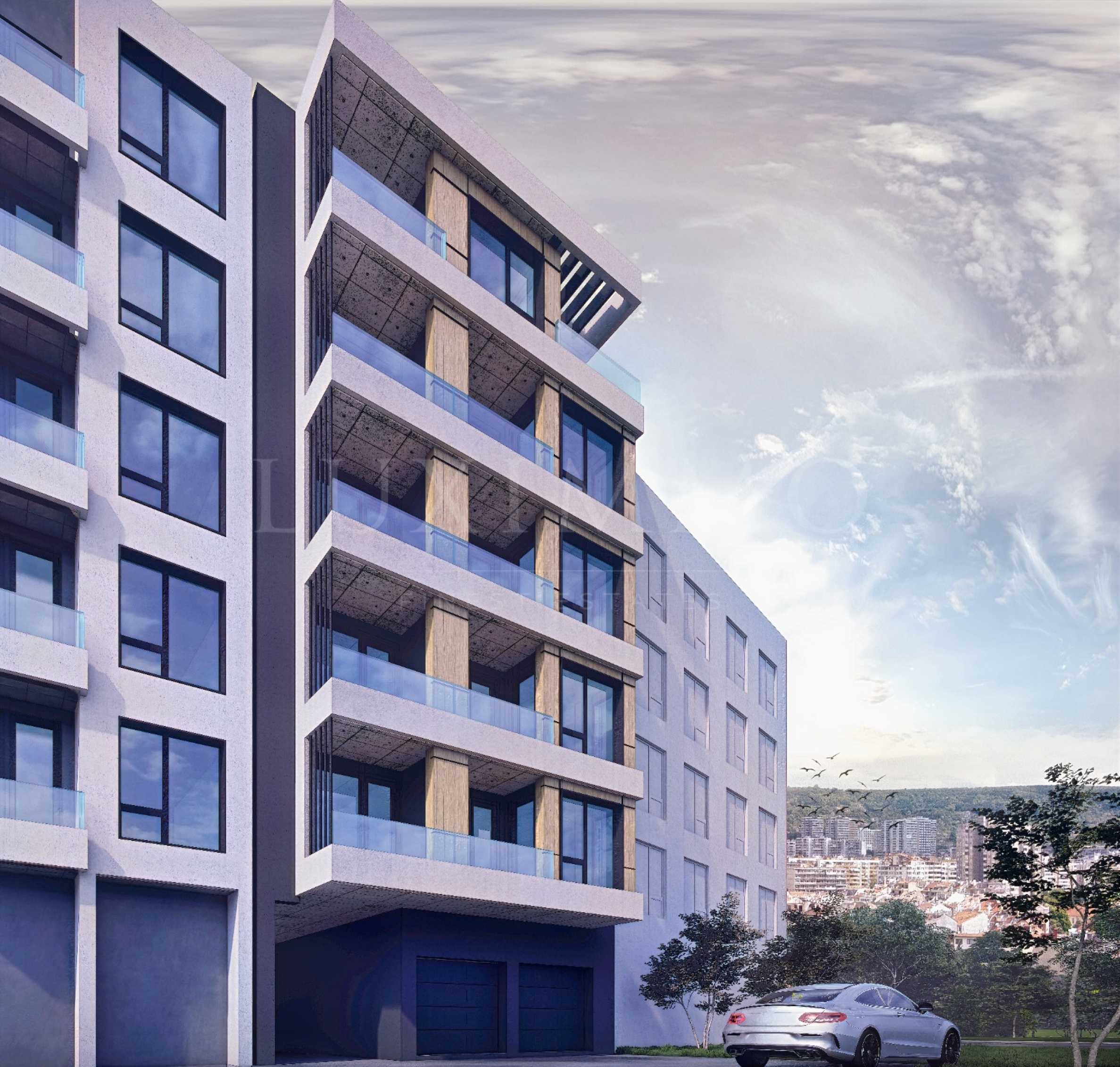Проектът на сградата е със съвременна визия и ефектна фасада, а имотите разпределени на 6 етажа са: