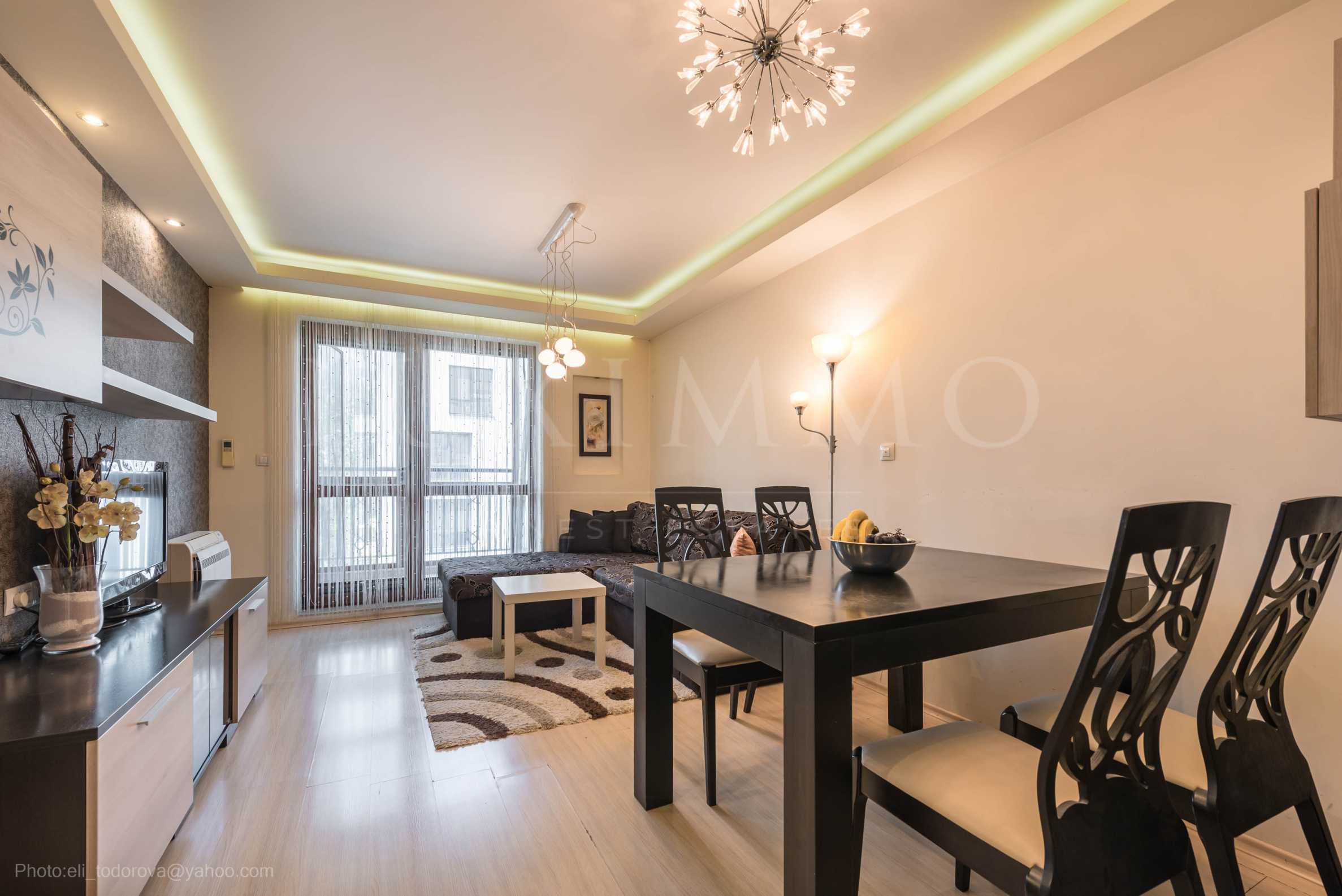 Апартаментът е напълно обзаведен и оборудван, готов за нанасяне, предлагайки комфорт и удобства на своите наематели.
