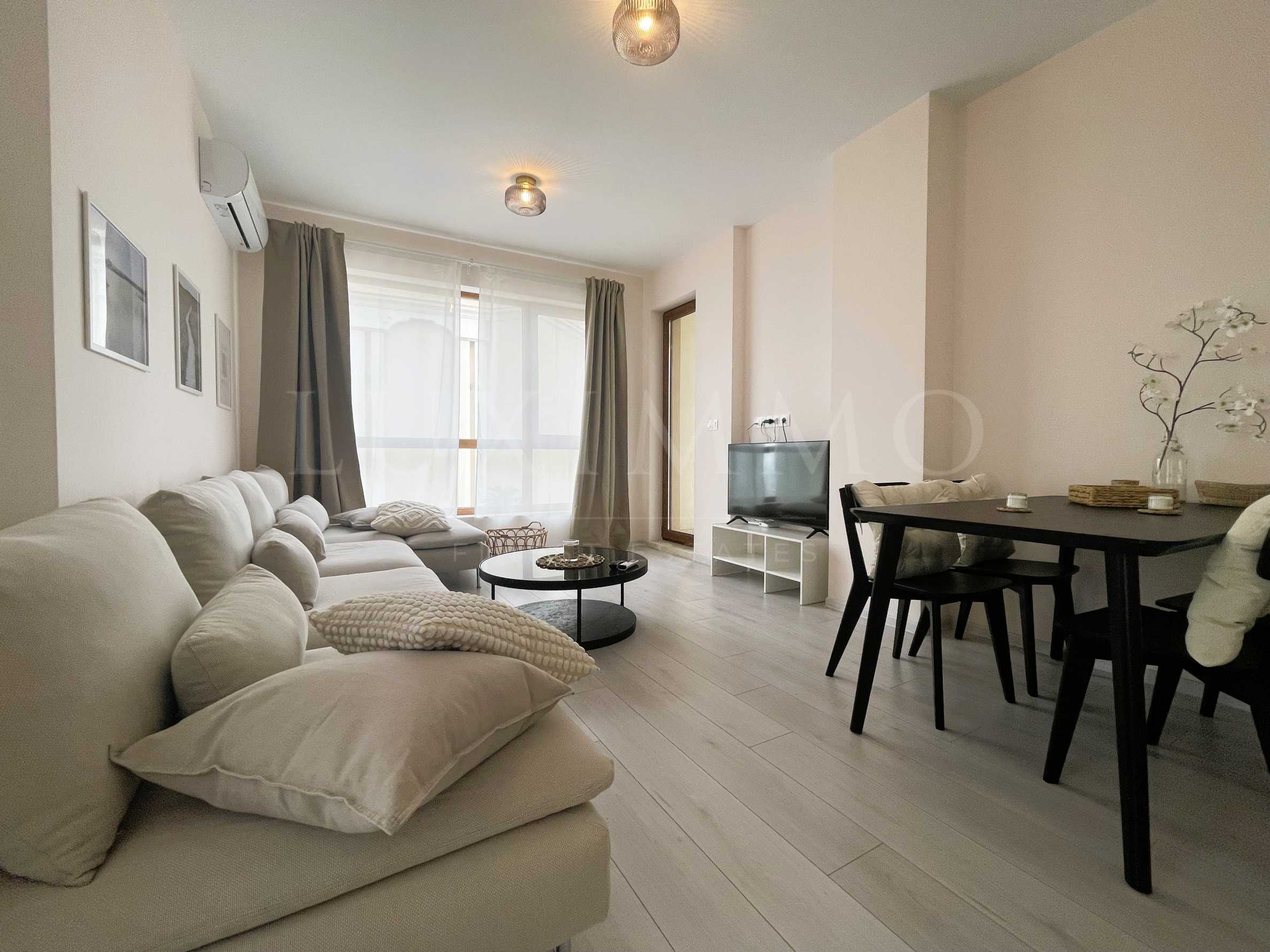 Представяме тристаен апартамент в отлично поддържан, елитен комплекс от затворен тип на самия плаж Кабакум. Топ локация в близост до автобусна спирка и на 5 минути с кола от супермаркет LIDL.