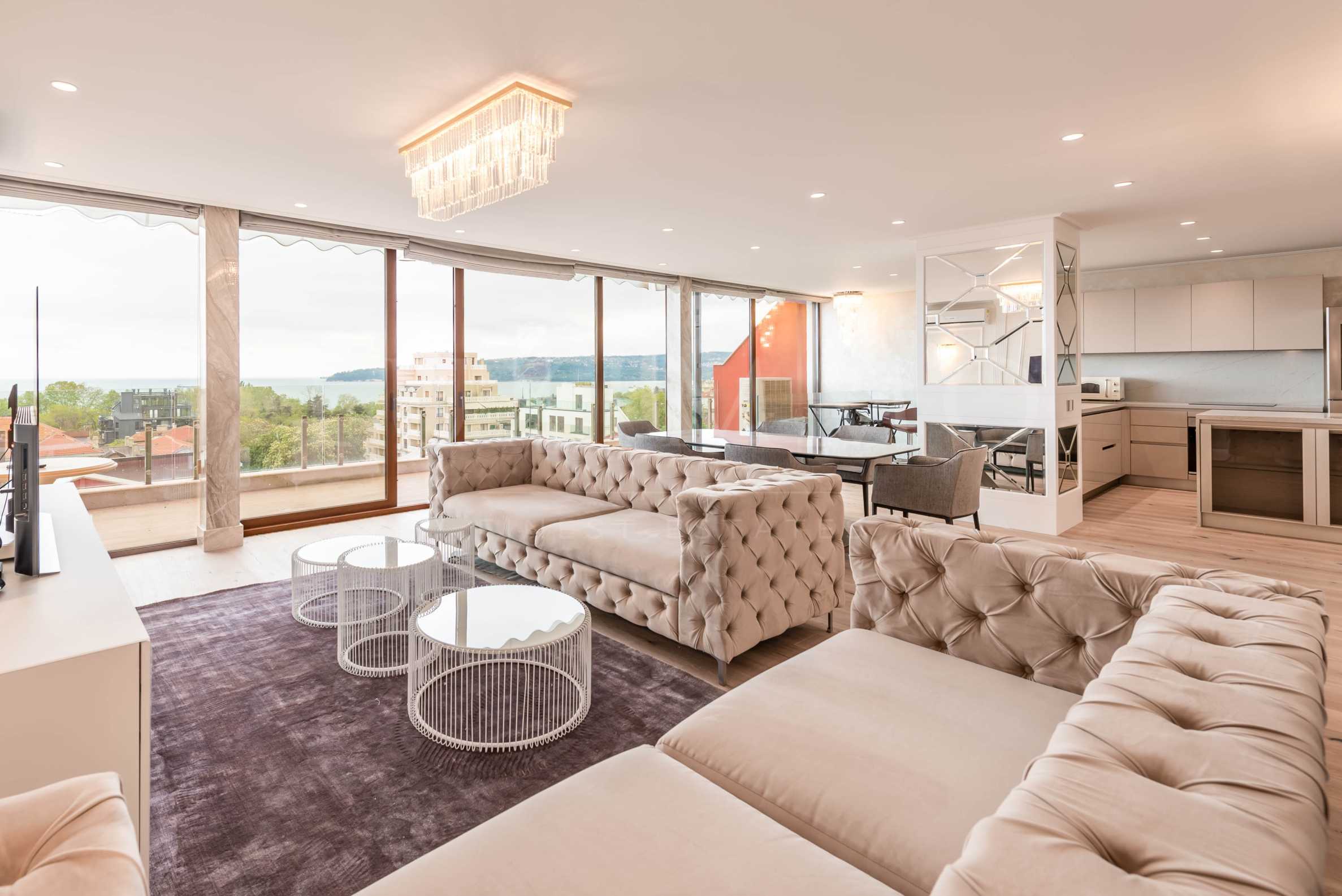 Представяме впечатляващ тристаен пентхаус под наем в елитна сграда, на непреходна локация в топ центъра на Варна и на метри от Морската градина, с уникална, нескриваема панорама към морето и всички забележителности на града. Стратегическо и елитно местоположение в района на хотел "Черно море", в близост до магазини и заведения, с лесен и бърз достъп до всички точки в централната част на морската столица.
