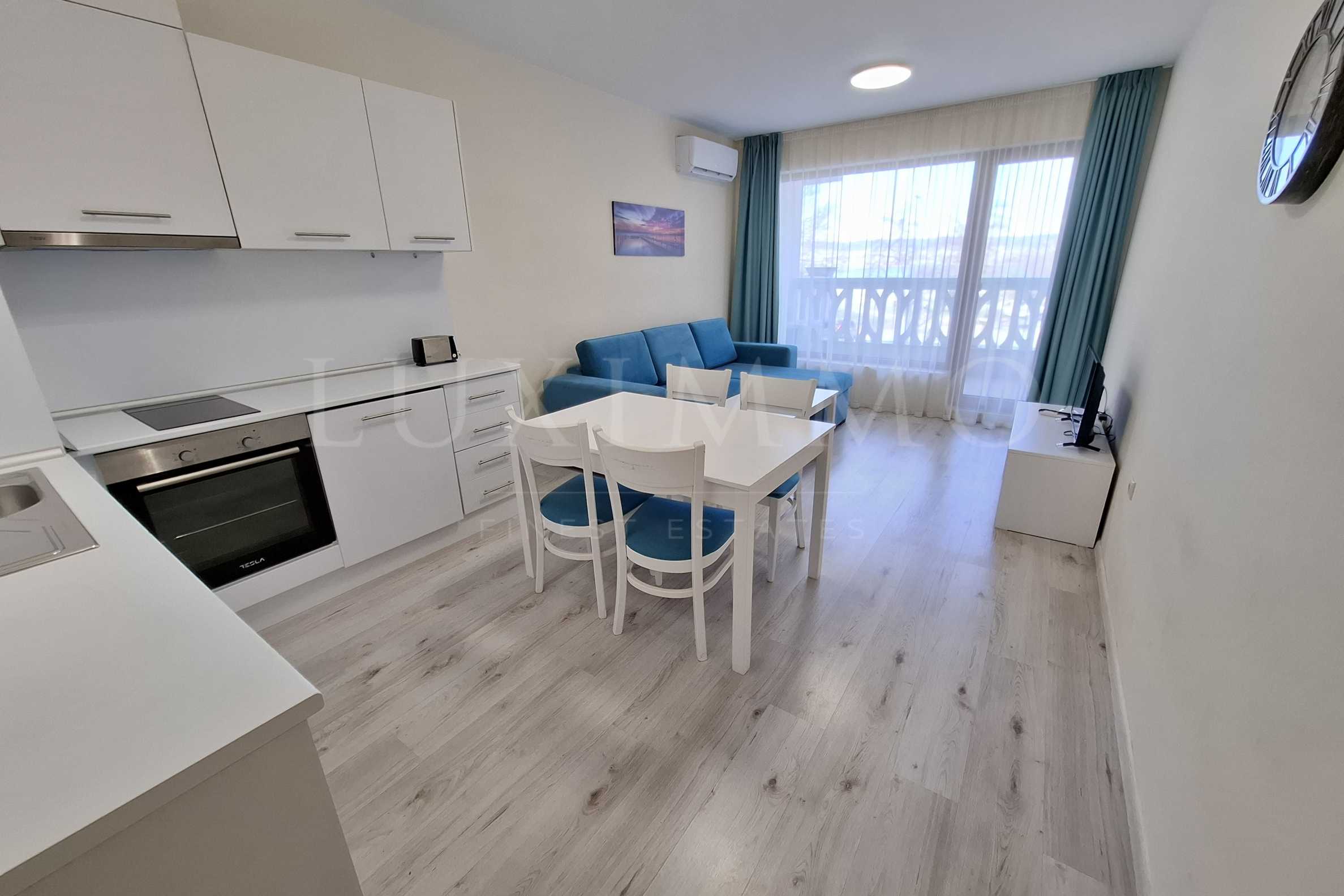 Жилището е напълно обзаведено и оборудвано с всичко необходимо като мебели и електроуреди, готово е за нанасяне.