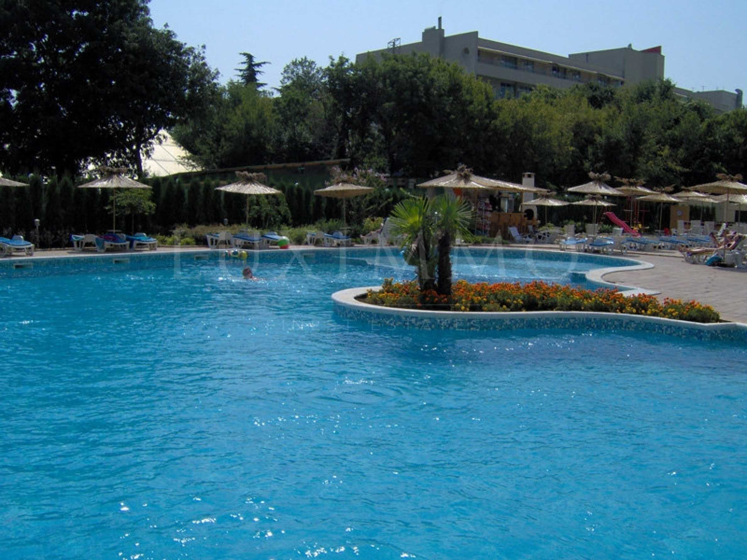 Целият комплекс е аранжиран с много зеленина, алпинеуми и парково осветление. Откритият басейн - 400 кв.м, е разположен във вътрешната, най-слънчева част на терена с изграден към него детски басейн. В непосредствена близост до басейна се намират кът за игри и дневен бар-барбекю. Целогодишно е организирана локална инфраструктурна поддръжка срещу 11.40 Euro/кв.м c ДДС - за календарна година.