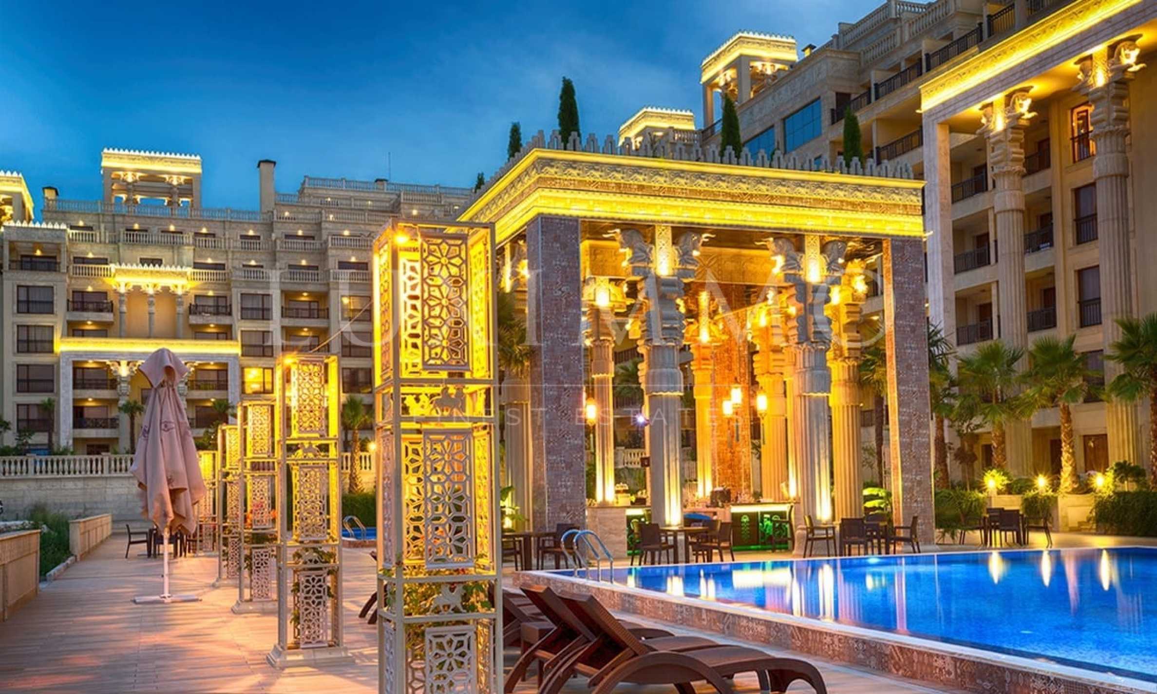 Представяме на Вашето внимание нов двустаен, обзаведен апартамент в комплекс - истински архитектурен шедьовър, въплъщаващ в стила си богата история. Намира се на втора линия от плажа в популярния морски курорт Златни пясъци. В допълнение към красивата морска панорама и великолепния парк, можете да се насладите на фасадата, богато украсена със скулптури, гравюри и орнаменти в стила на древна Месопотамия. Декоративните елементи, използвани в строителството са направени на ръка, което гарантира високото им качество и уникалност.