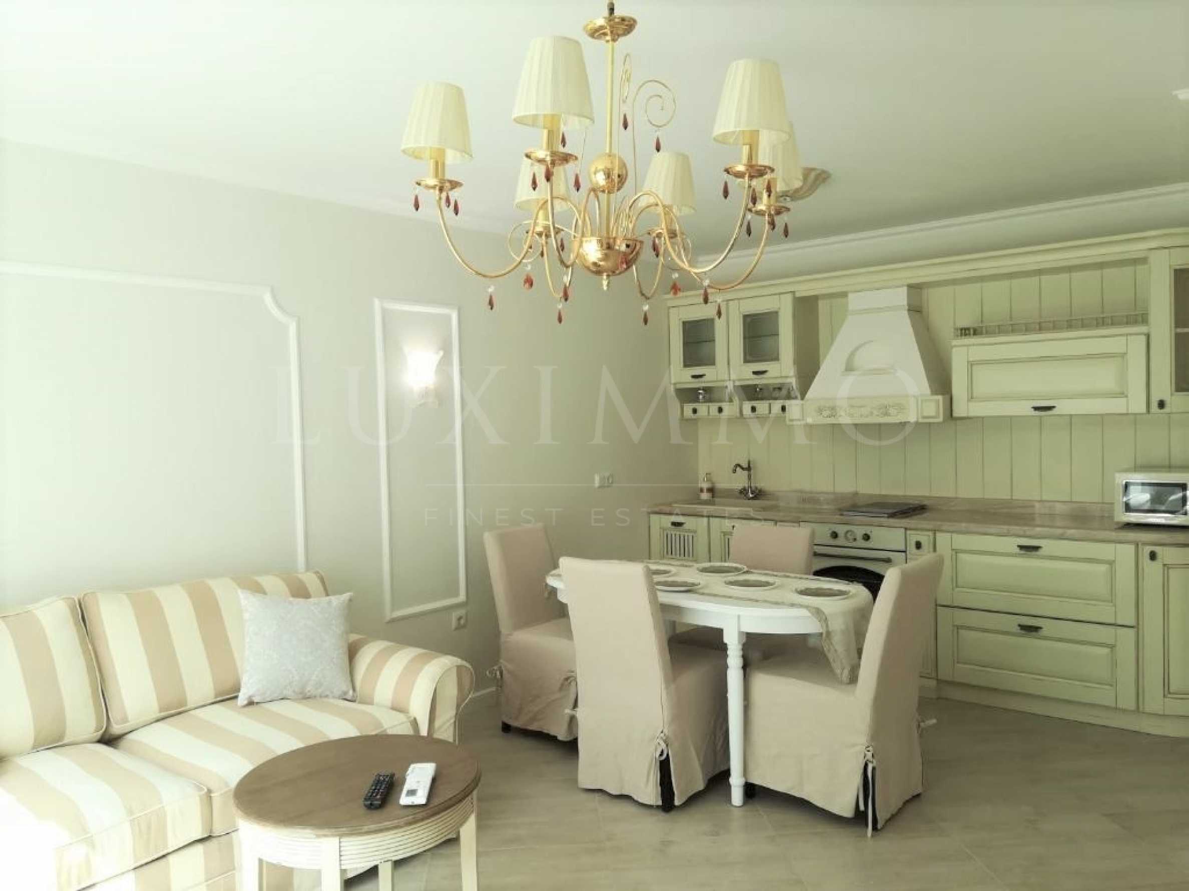 Апартаментът е качествено и луксозно обзаведен с мебели Martineli. Осигурени са телевизор, фурна, микровълнова печка, тостер, кафемашина и електрическа кана.