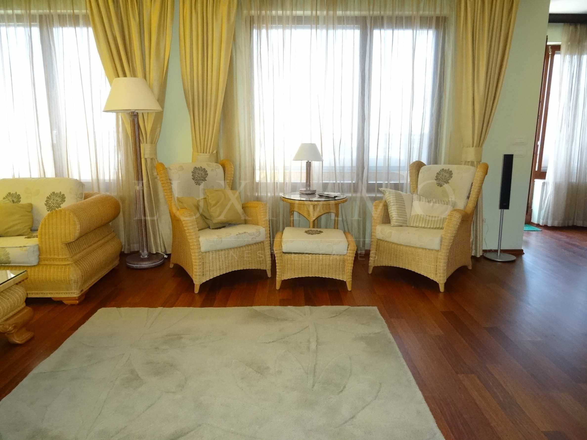 Апартаментът е обзаведен по поръчка от известна дизайнерска фирма. Използвани са елегантни, уютни и иновативни решения, в съчетание с красотата и богатството на класическия дизайн.