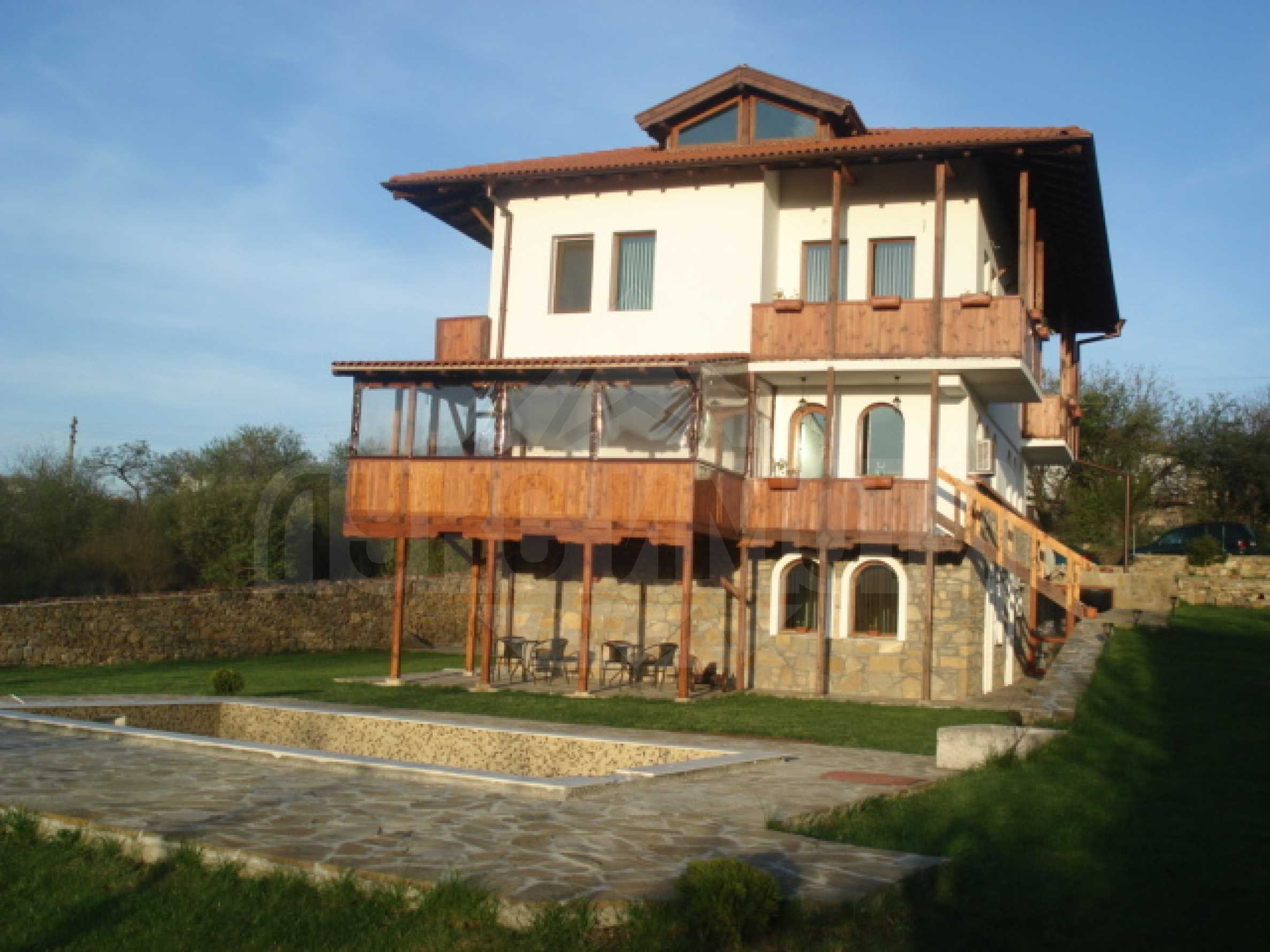Новопостроена къща за гости в село Арбанаси с РЗП 427 кв.м. и двор 920 кв.м. Разположен в началото на селото имотът е лесно достъпен през цялата година.