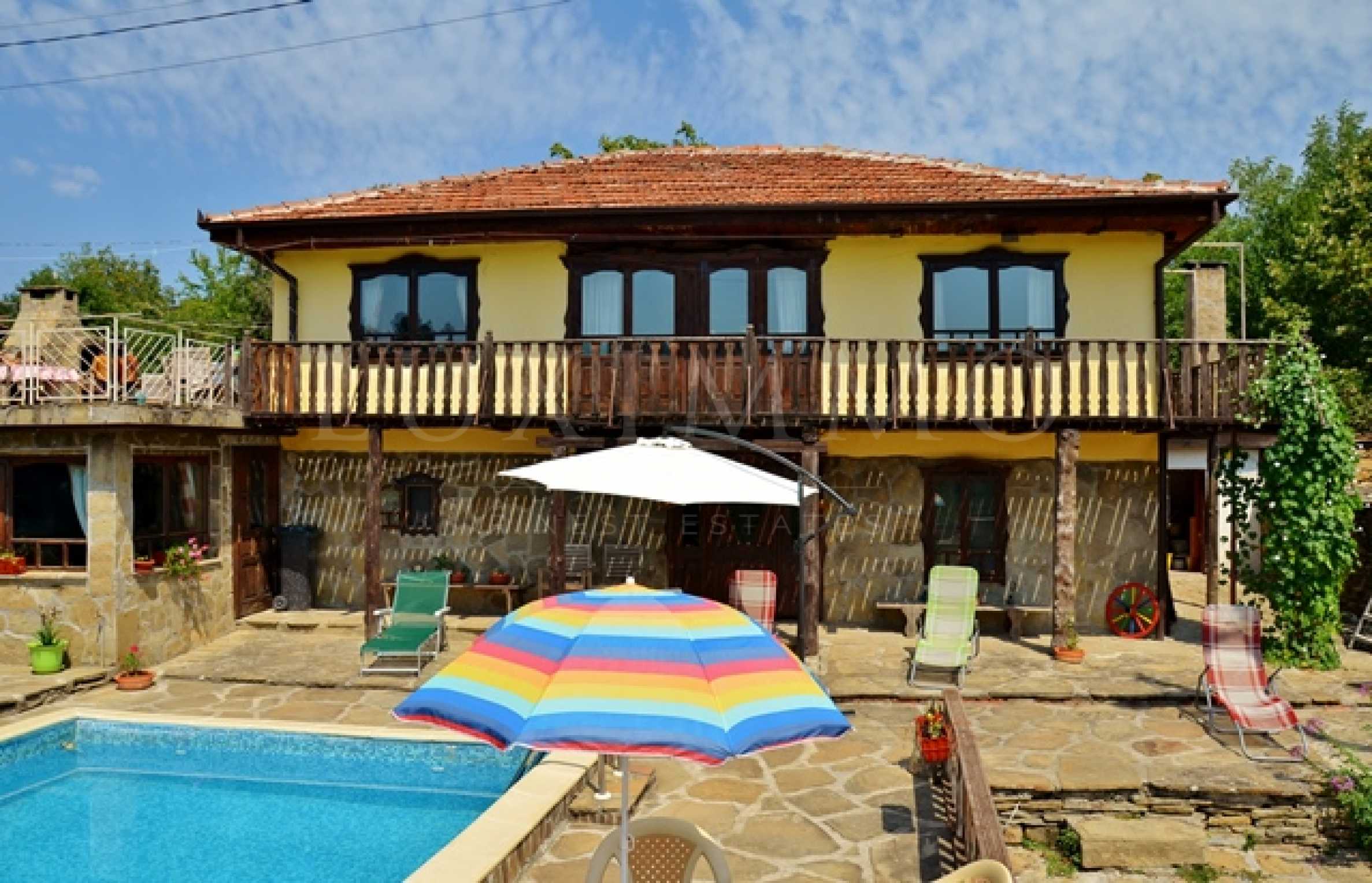 Имотът представлява две отлично ремонтирани двуетажни къщи с допълнителни стопански постройки, навеси, разположени в огромен двор. Сградите са изцяло реновирани, напълно, стилно и луксозно обзаведени. Разгърнатата застроена жилищна площ е в размер на общо 355 кв.м. Съответно 185 кв.м и 170 кв.м.