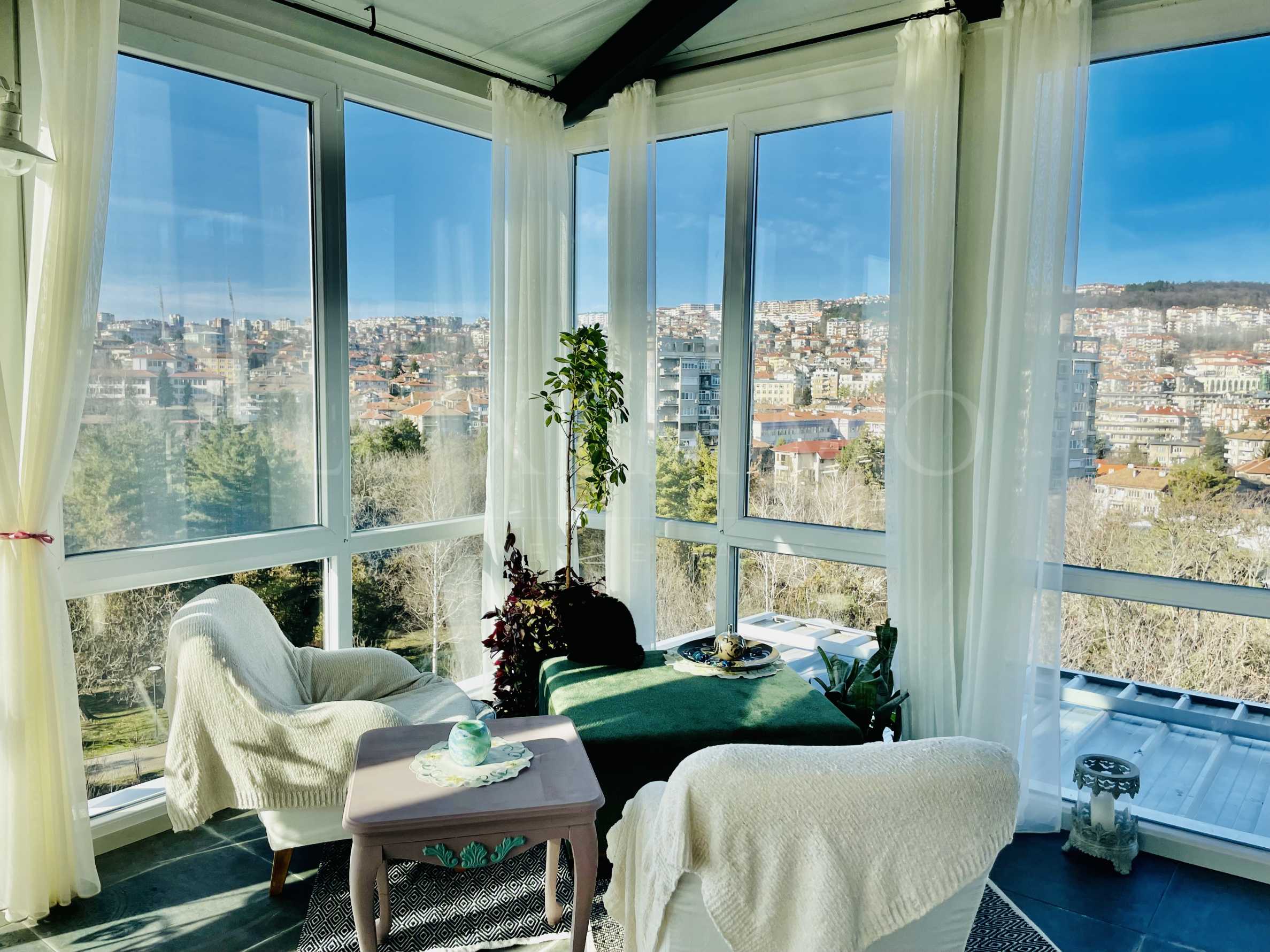 Апартаментът е разположен на седми етаж в сграда ново строителство с асансьор. Жилището е с изложение юг –изток-север и предлага красива панорамна гледка не само към града , а и към върховете на Стара планина.