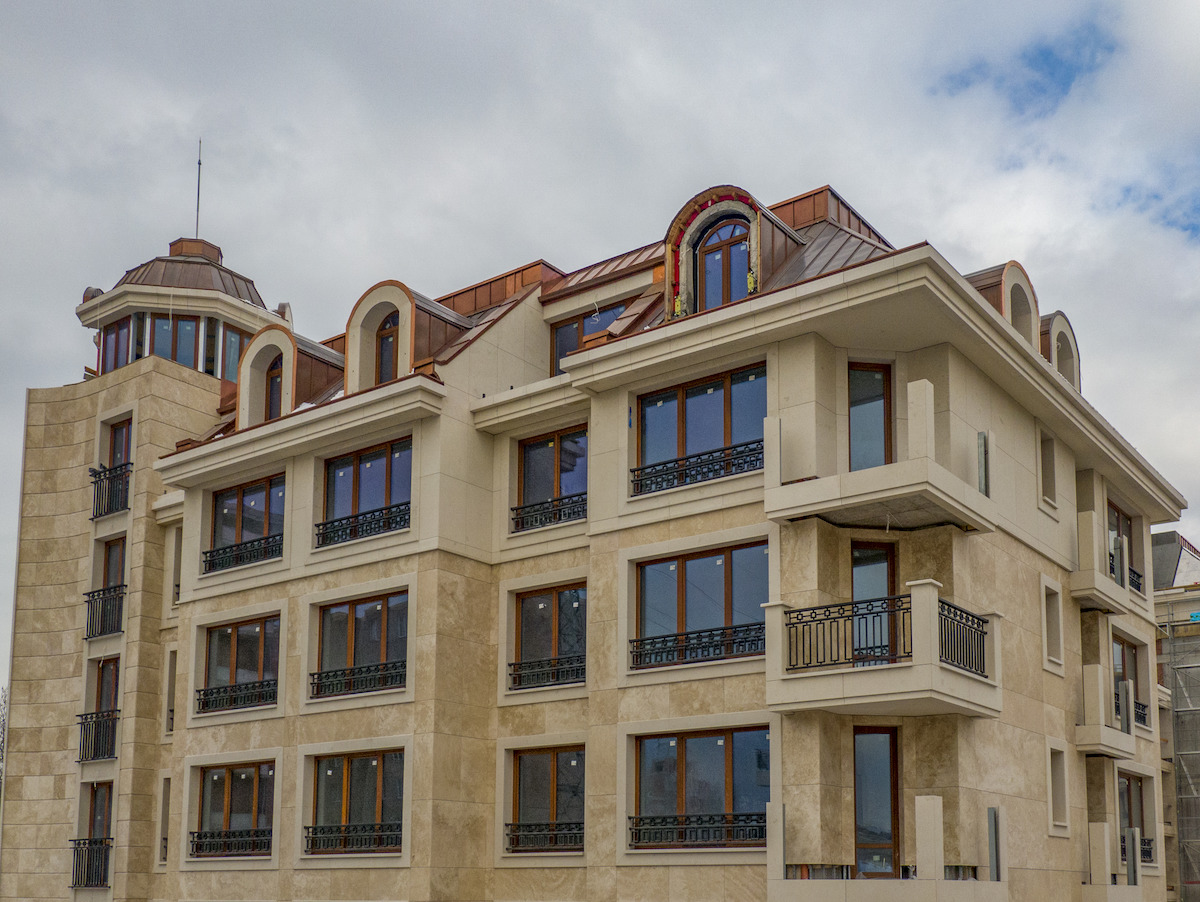 • Монтаж на вентилируема окачена фасада с облицовка от травертин и варовик “крема екстра” сграда B - север и изток и сграда D – юг;